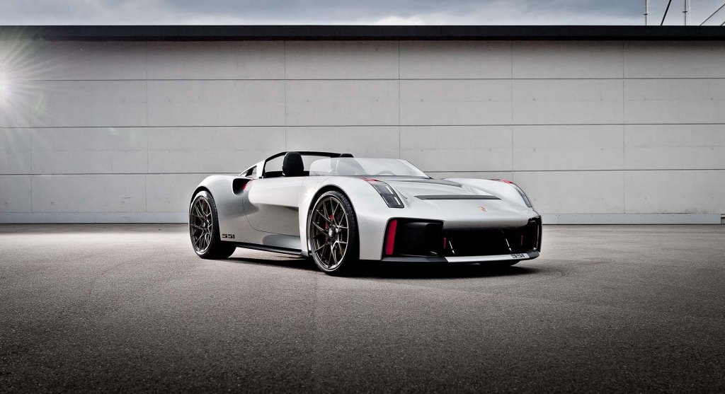 Con su habitáculo espartano y purista, las características rejillas del radiador sobre el motor central, los elementos gráficos en rojo y las aletas en la parte trasera, el compacto Porsche Vision Spyder (2019, hard model 1:1) recuerda claramente al Porsche 550-1500 RS Spyder de 1954. Al mismo tiempo, el estudio tenía como objetivo desarrollar aún más la identidad de diseño de Porsche y proporcionar un conjunto de ideas para futuros detalles, por ejemplo, la ultramoderna barra antivuelco.