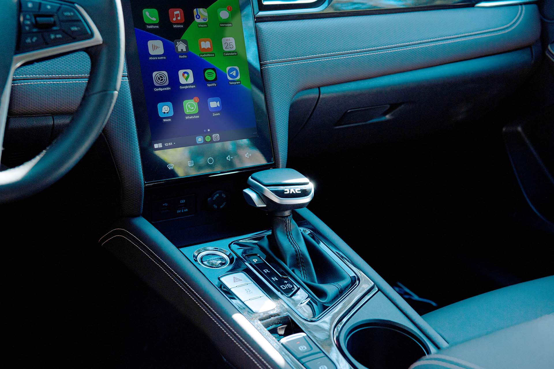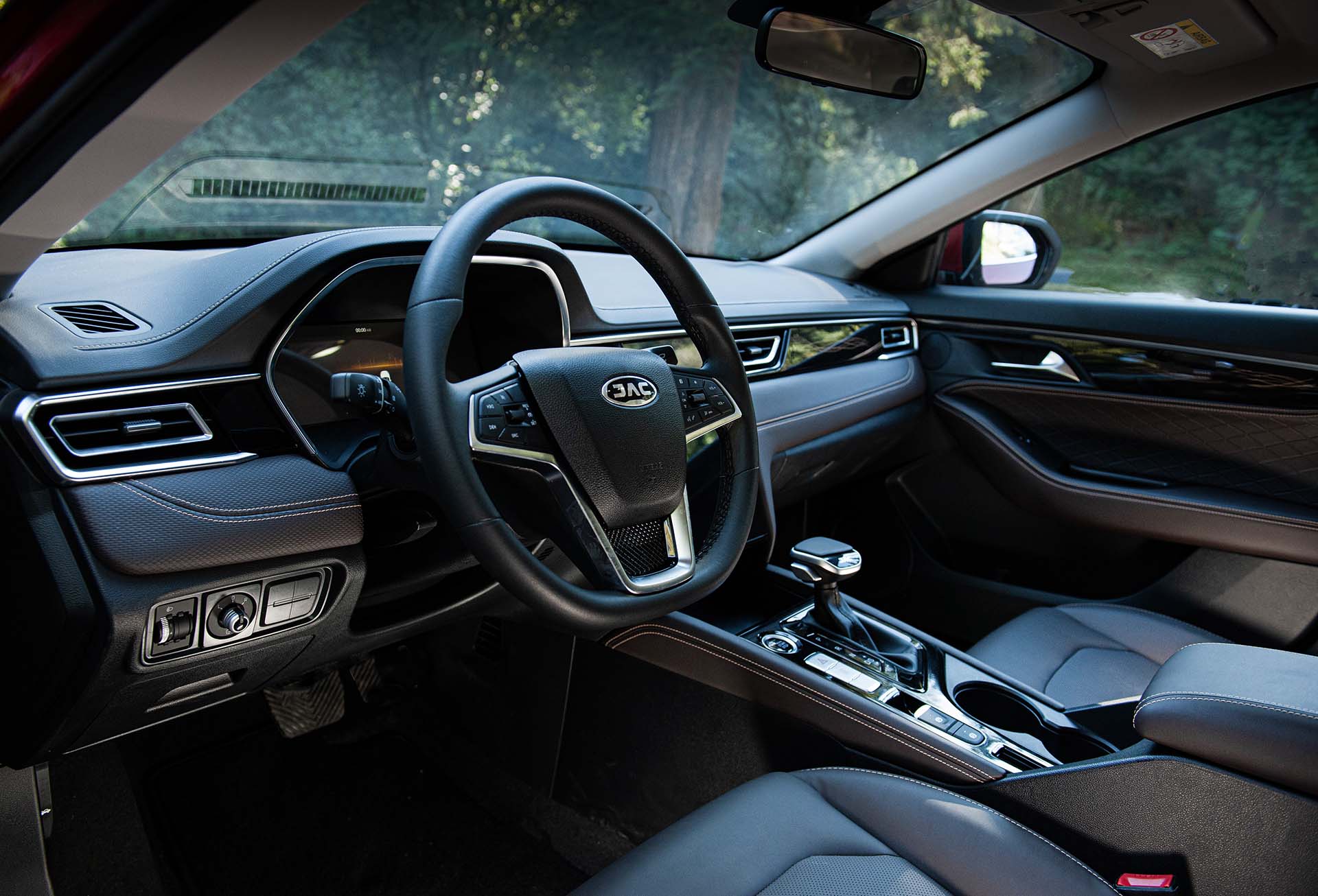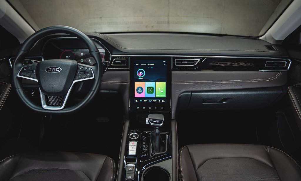 El interior de JAC J7 se define por su alta tecnología gracias a una pantalla multimedia vertical de 10.4” con Android Auto y Apple CarPlay, así como cluster digital de 10” LCD, mandos de audio al volante, luz ambiental personalizable con opción de 64 colores diferentes, 8 bocinas y 4 entradas USB. En cuanto a confort, calidad, y capacidades, JAC J7 cuenta con asientos de piel, el de conductor es calefactable, llave de presencia, auto hold, ventilas traseras de A/C y filtro para polen; su cajuela tipo liftback tiene una capacidad de 540 litros y 1650 litros con asientos abatidos.