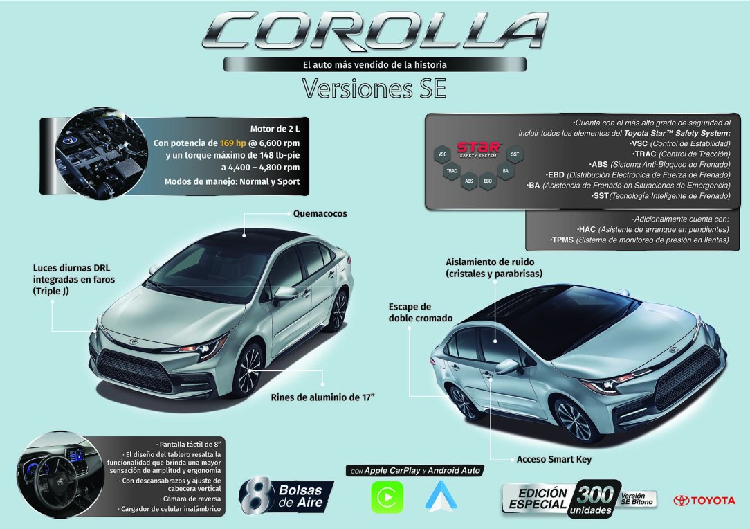 En el caso del vehículo más vendido del mundo, Corolla, en 2019 presentó su nueva imagen, basada en la apuesta de Akio Toyoda, presidente global de la marca japonesa, que busca traer más emoción a los autos que produce.