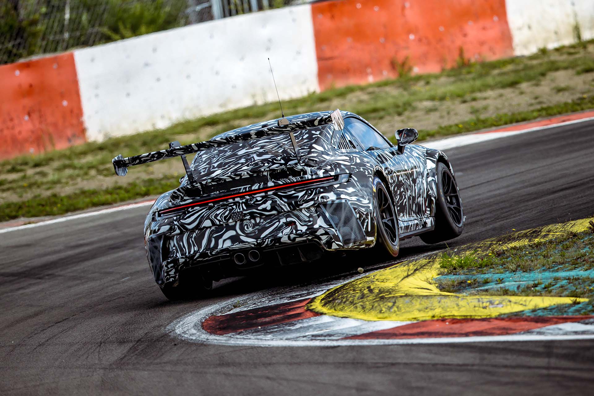 A mediados de 2020, tras varios miles de kilómetros en pista, al ‘TC01’ se le unió un sucesor: el primer vehículo de preproducción de Zuffenhausen. “Fue fabricado en la misma línea de montaje, en las instalaciones principales, que el anterior 911 y ya era muy similar a la versión final de carreras”, dijo Feldmann. La principal función de este auto era completar distancias largas, incluso en el circuito del Gran Premio de Nürburgring. Junto con el austriaco Bachler, para las pruebas estaban sus colegas alemanes Marco Holzer, el plusmarquista del Nordschleife Lars Kern, el tres veces campeón de la Porsche Mobil 1 Supercup Michael Ammermüller y el embajador de Porsche Jörg Bergmeister.