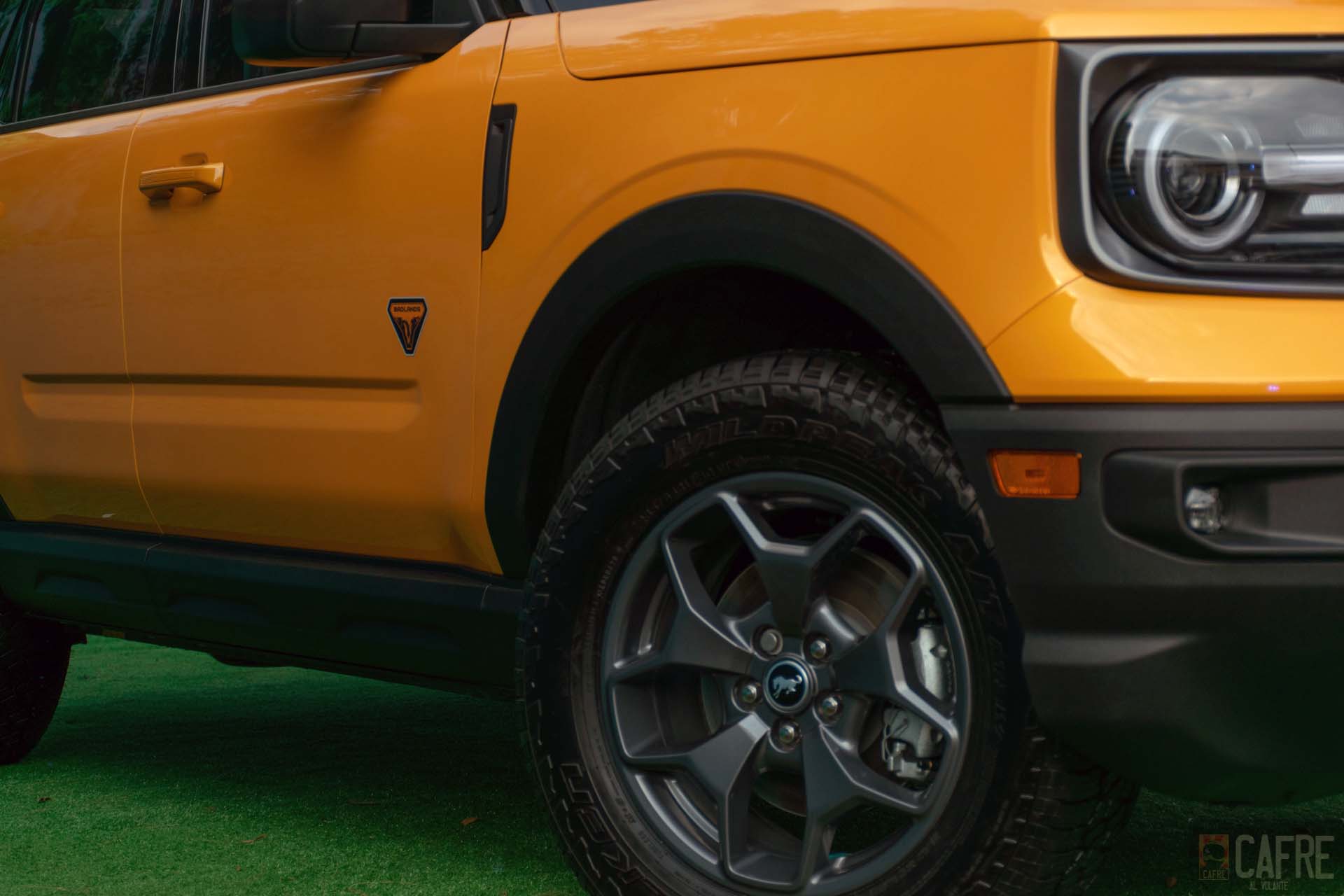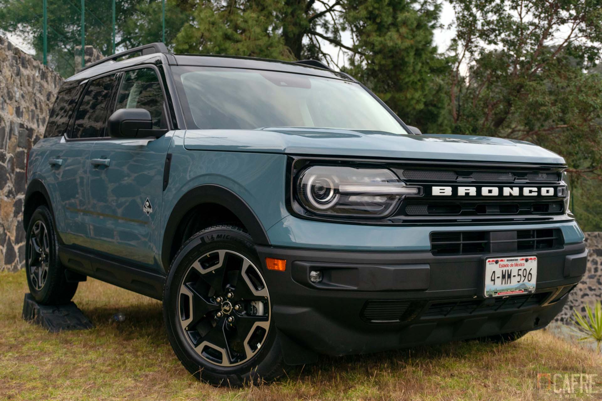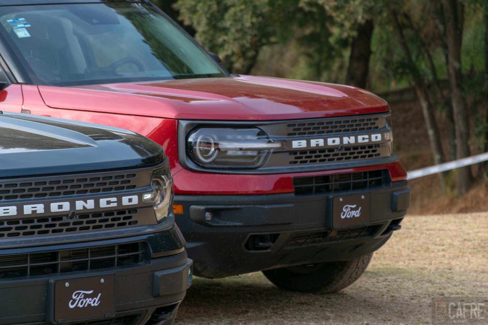 Con estas pruebas fue como tuvimos nuestro primer acercamiento con la Bronco Sport. El diseño exterior busca esa semejanza con la primera generación. Los faros redondos y las luces direccionales ahora están incorporadas en una sola pieza, la parrilla grande con la palabra “BRONCO” en toda ella, el diseño cuadrado característico de este vehículo.
