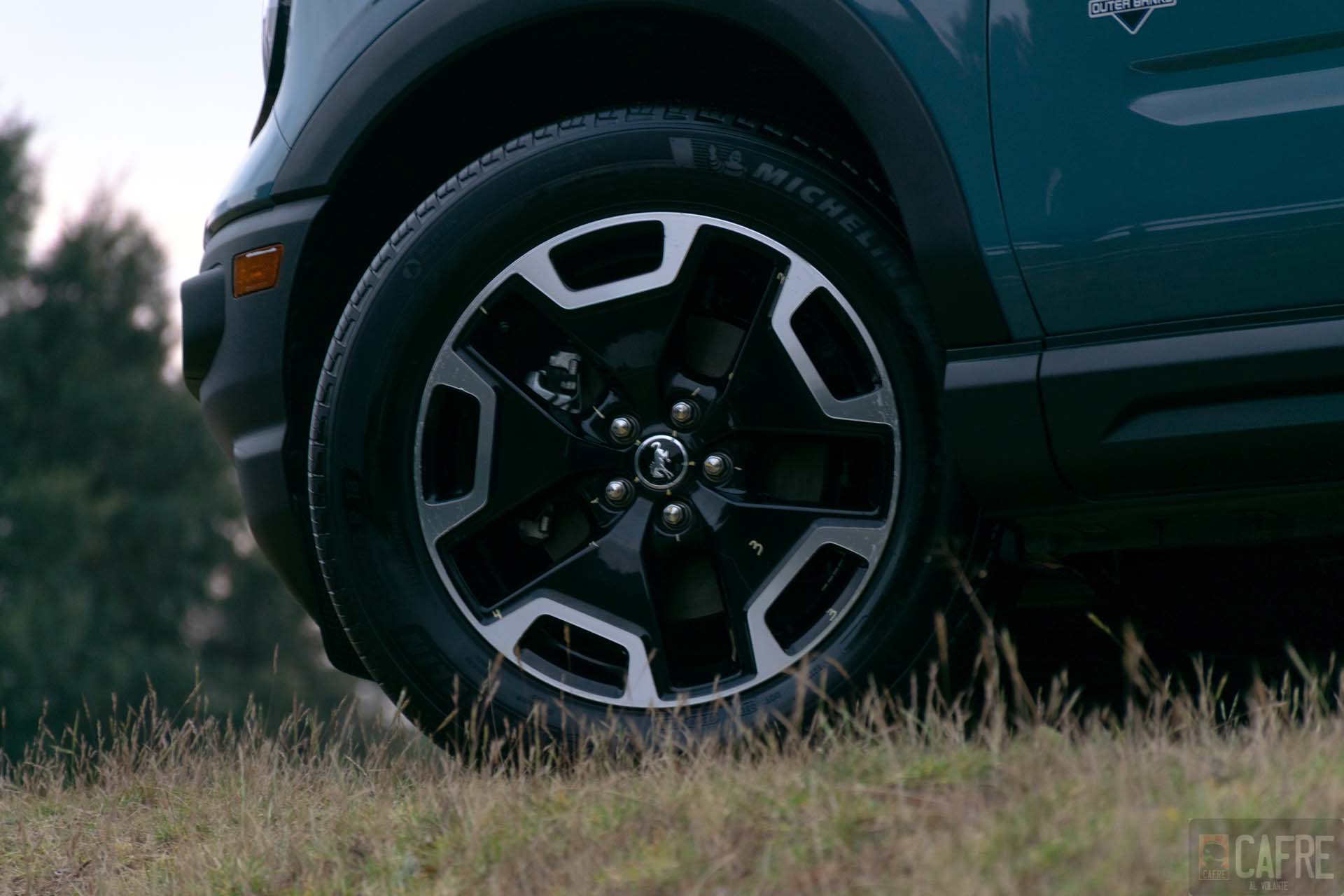 Ya que habíamos terminado la prueba de todo terreno, pasamos a la pista, donde nos esperaba la versión Outer Banks. Esta versión es un poco más citadina porque incorpora un motor de 3 cilindros 1.5L Turbo EcoBoost que produce 181 HP y 190 lb/pie de torque (nada mal para un motor de 3 cilindros) también acoplada a una tramsión de 8 velocidades. Otro de los detalles para esta versión es que no incorpora ganchos de arrastre en las fascias y que tendremos rines bitono de 18 pulgadas a diferencia de los de 17 pulgadas de la versión Bad Lands. A pesar de que verse como una SUV para ciudad, no le quita la capacidad de irse fuera del asfalto y divertirse en la tierra.