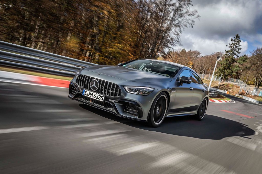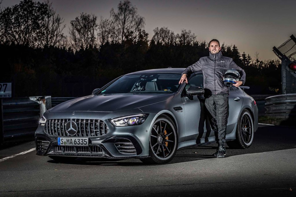 Con el año modelo 2021, en producción desde septiembre de 2020, el Mercedes-AMG GT 63 S 4MATIC+ es aún más rápido en el legendario Nordschleife del Nürburgring. Gracias a la cinemática y elástica recién ajustadas y otras medidas, el ingeniero de desarrollo de AMG, Demian Schaffert, estableció un nuevo tiempo récord, colocando al coupé de cuatro puertas de Affalterbach de manera impresionante en el primer lugar en la lista oficial de los mejores autos en la categoría de «clase de lujo». El ex piloto de carreras batió su propio récord de vuelta anterior establecido en el otoño de 2018 por más de dos segundos. Los valores medidos oficialmente y certificados notarialmente son: 7:23.009 min para la versión de 20.6 kilómetros de longitud (sin medición en línea recta para el sector de la pista, T13) y 7:27.800 min para la vía completa de 20.832 kilómetros (con medición de línea recta para el sector de la pista, T13). Exactamente esta variante y este tiempo de vuelta están incluidos oficialmente por Nürburgring GmbH en su página de inicio.