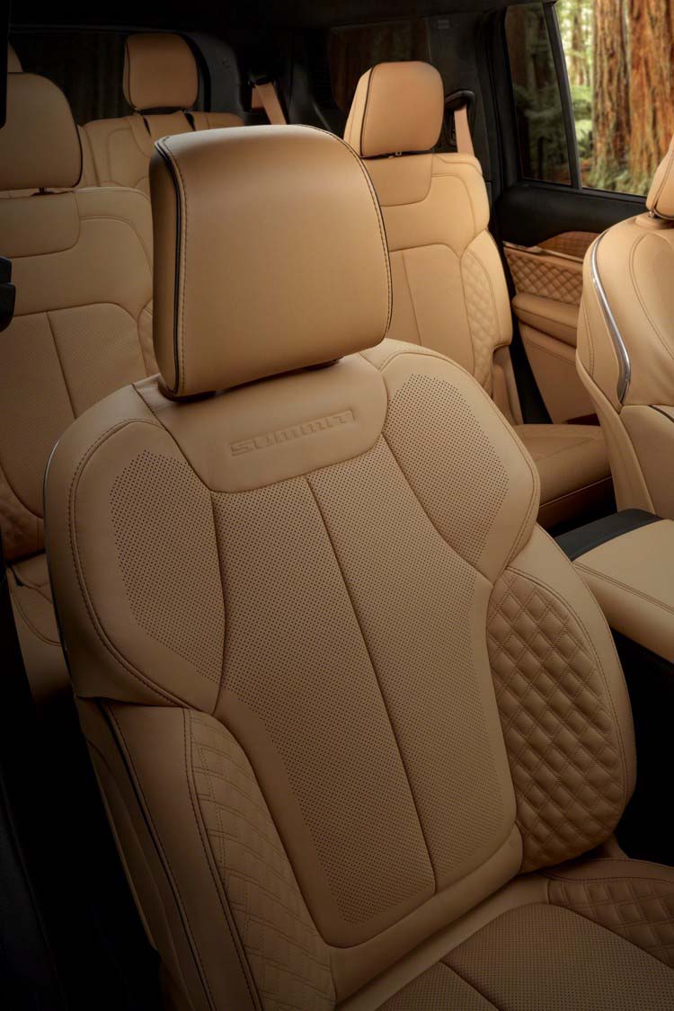 El nuevo Grand Cherokee L gana 36 mm de anchura de ejes lo que le confiere mayor presencia. Las salpicaderas trapezoidales no solo refuerzan su sólida imagen, sino que proporcionan espacio suficiente para alojar neumáticos calzados en rines de 21 pulgadas, que se ofrecen con el paquete Summit Reserve por primera vez en un Grand Cherokee.
