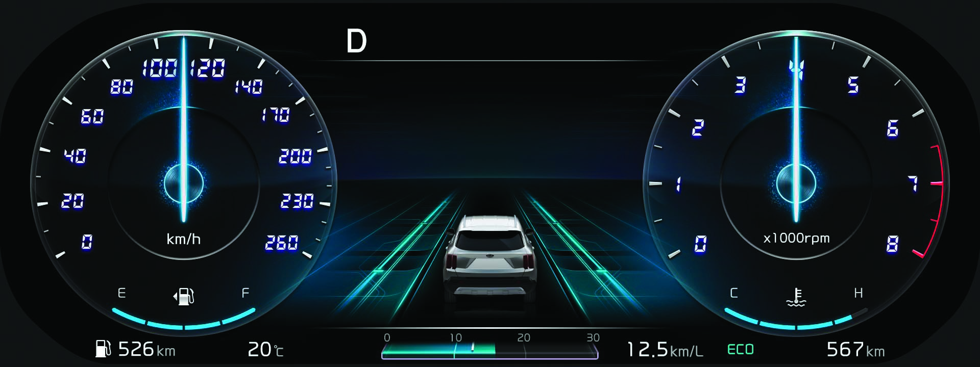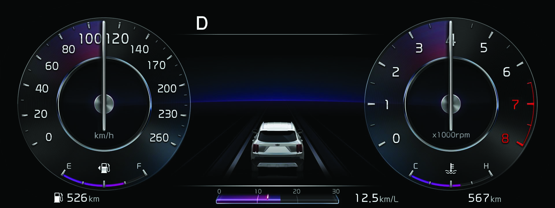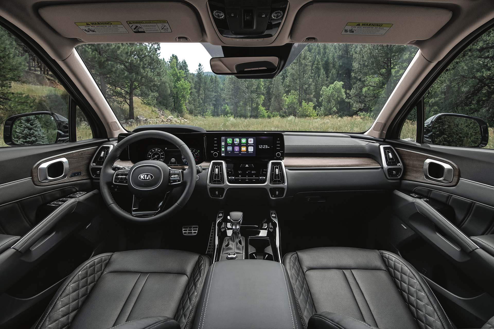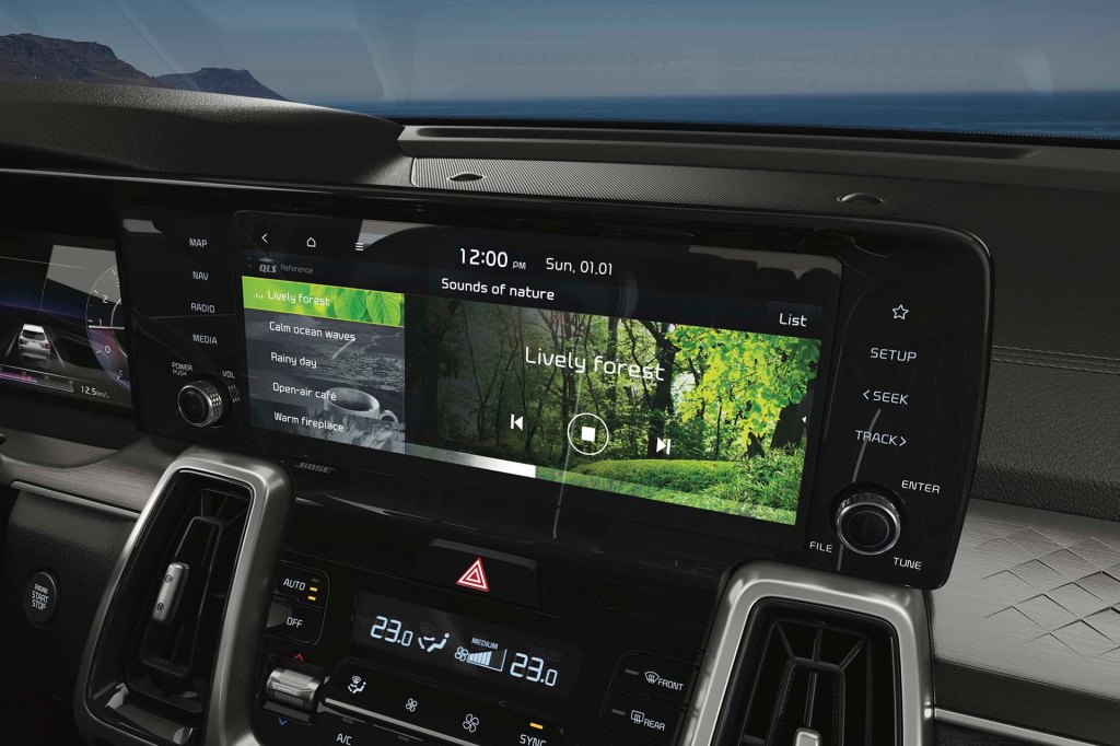 KIA se ha convertido en sinónimo de tecnología, y Sorento no es ajeno. Apenas al colocarnos detrás del volante se puede ver el espectacular clúster con pantalla de 12.3”, con diseños a elegir y que muestra la información de viaje más importante, como velocidad, revoluciones por minuto, advertencias y señales de navegación.