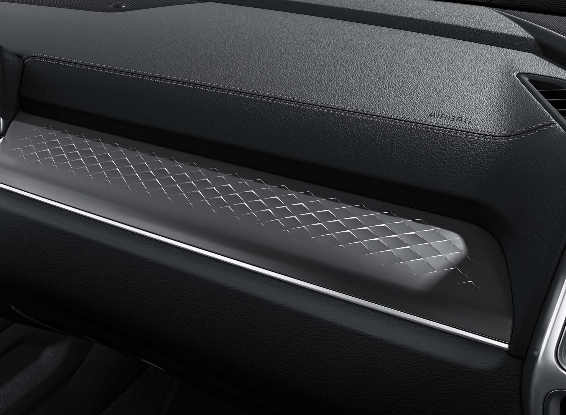 Cuenta con cargador inalámbrico para los dispositivos inteligentes y un sistema de audio premium Bose de 12 bocinas (SX); así como una pantalla táctil de 10.25” con Apple CarPlay y Android Auto.