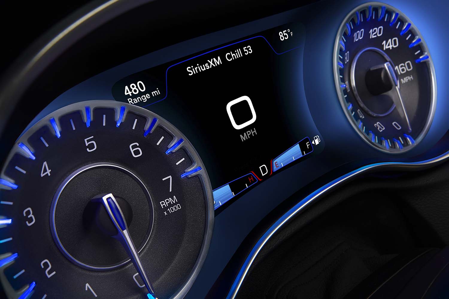 Los elementos de diseño interior del Chrysler 300 incluyen un cuadro de instrumentos con cluster digital a color de 7 pulgadas, así como un exclusivo selector de cambios rotativo denominado E-shift que se complementa con paletas de cambio detrás del volante para efectuar los cambios de velocidad.