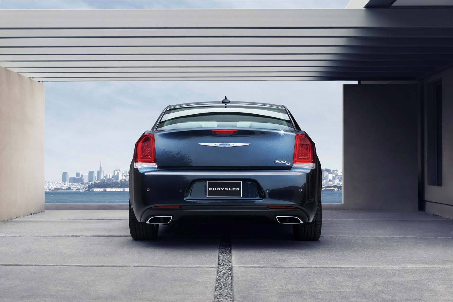 La parte trasera presenta una superficie fluida y diversos acentos cromados, así como las icónicas luces verticales. Un par de puntas de escape pulidas y elegantemente dibujadas se colocan en las esquinas para darle al Chrysler 300 una apariencia atlética y lujosa al mismo tiempo.