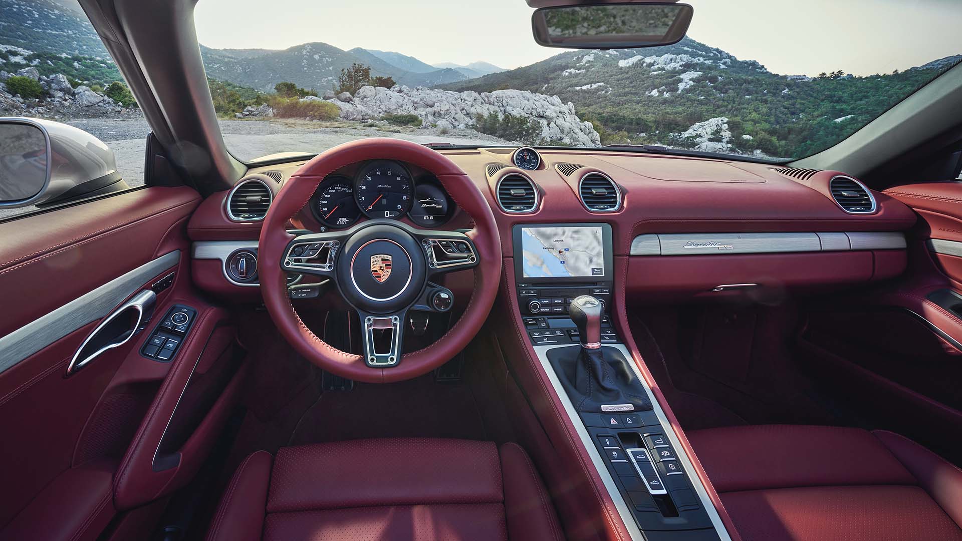 Siguiendo el estilo del modelo histórico original, esta serie limitada combina el interior en cuero burdeos con una capota de lona roja que lleva la inscripción ‘Boxster 25’. En ambos casos los clientes también pueden optar por el color negro. Además, entre el equipamiento de serie del nuevo modelo se encuentra el paquete interior en aluminio, los asientos deportivos regulables eléctricamente en 14 posiciones, la leyenda ‘Boxster 25’ en el umbral de las puertas y el volante deportivo multifunción GT de cuero y calefactado.