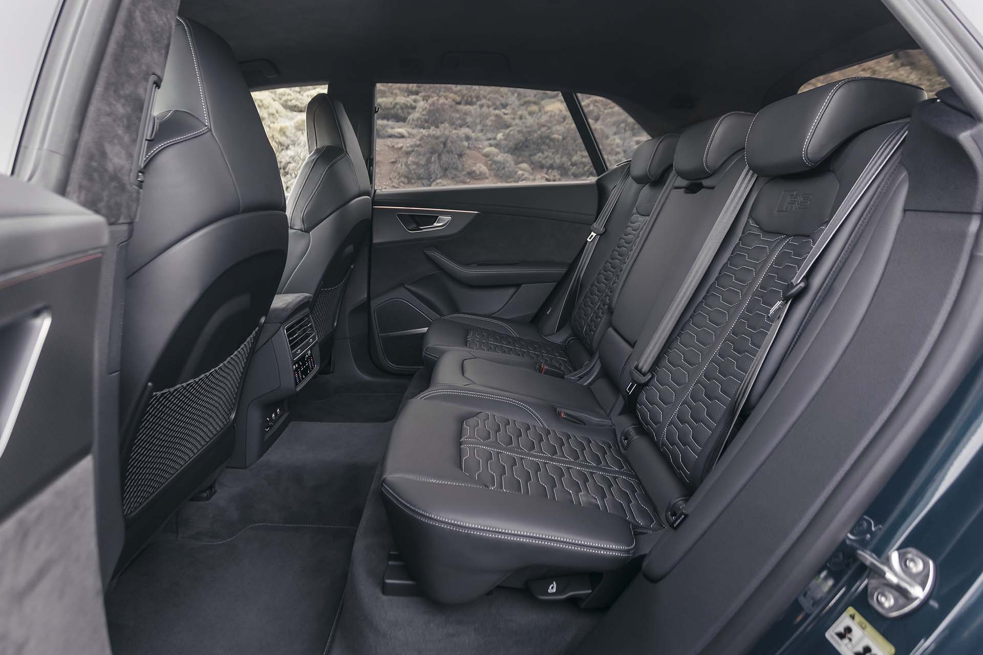 El RS Q8 no deja de lado la versatilidad para el uso diario, algo que queda especialmente patente en la parte trasera, donde la fila de tres asientos individuales con reglaje longitudinal forma parte de la dotación de serie. Con los respaldos posteriores abatidos, el maletero alcanza un volumen de 1,755 litros.