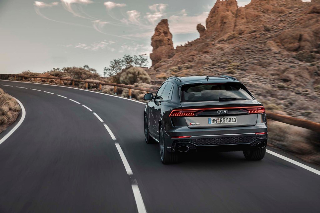 La dirección a las cuatro ruedas, que forma parte del equipamiento de serie, permite que el eje trasero puede girar hasta 5 grados en sentido opuesto al delantero cuando se circula a baja velocidad; a velocidad elevada, en cambio, gira en el mismo sentido que las ruedas delanteras hasta un máximo de 1.5 grados. Con su distancia libre al suelo variable, sus cortos voladizos, la tracción integral permanente quattro y el control de descensos, el nuevo Audi RS Q8 puede continuar el viaje sin problemas cuando termina el asfalto.