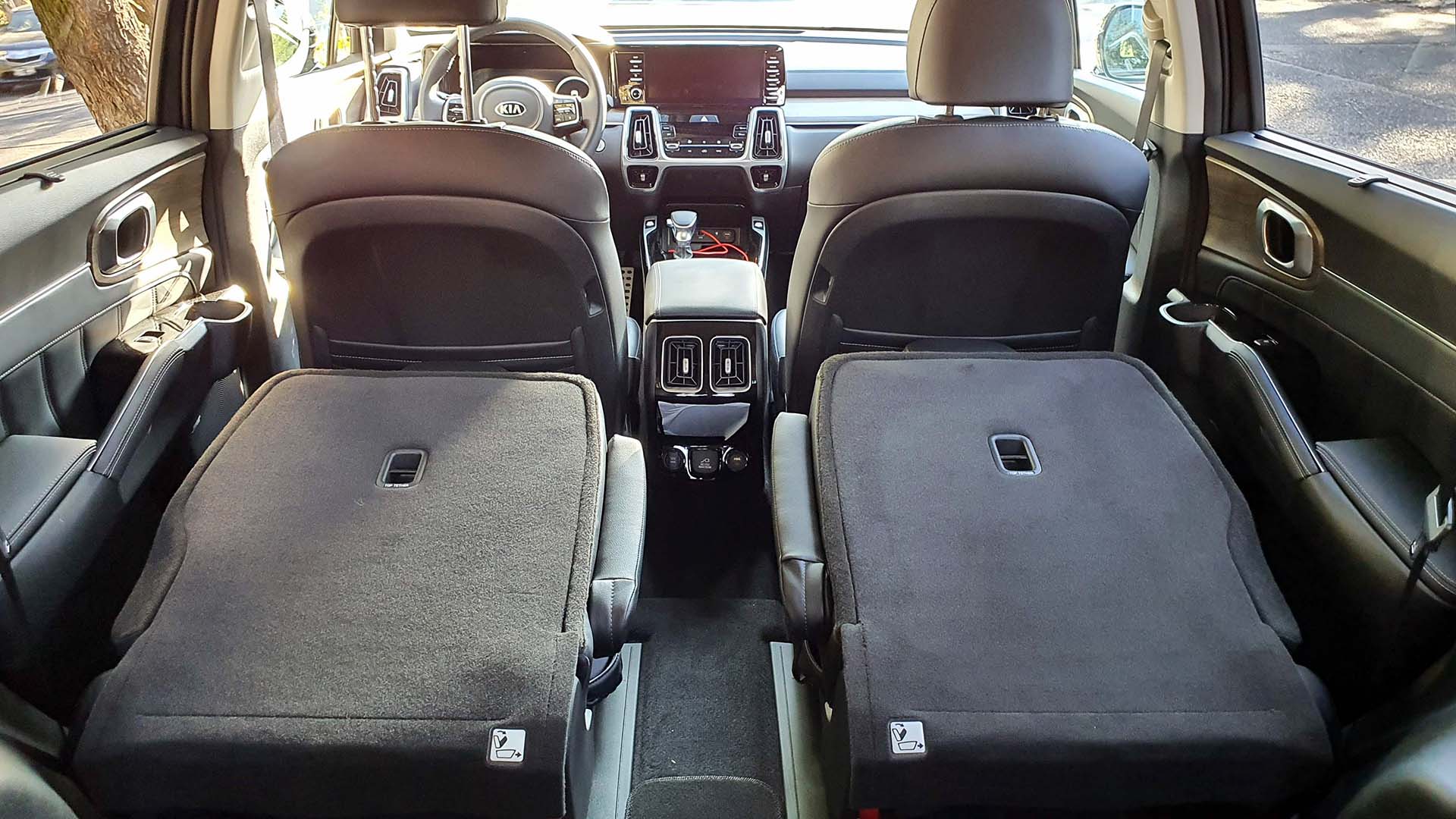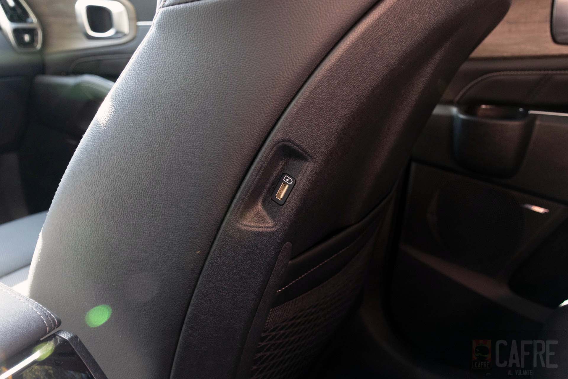 Al ser considerado un vehículo para transportar a varios pasajeros, también piensan en la practicidad y por este motivo el KIA Sorento incorpora además del cargador inalámbrico y USB para la primera fila, también tendremos cargadores para la segunda y tercera fila. Un detalle en el diseño es que podemos encontrar estos cargadores en el respaldo de los asientos delanteros y en la parte trasera de la consola central también podemos conectar nuestros dispositivos vía USB, conector “de auto” o una de enchufe de 110V y para los de la tercera fila también tendrán un cargador a los extremos de los asientos.