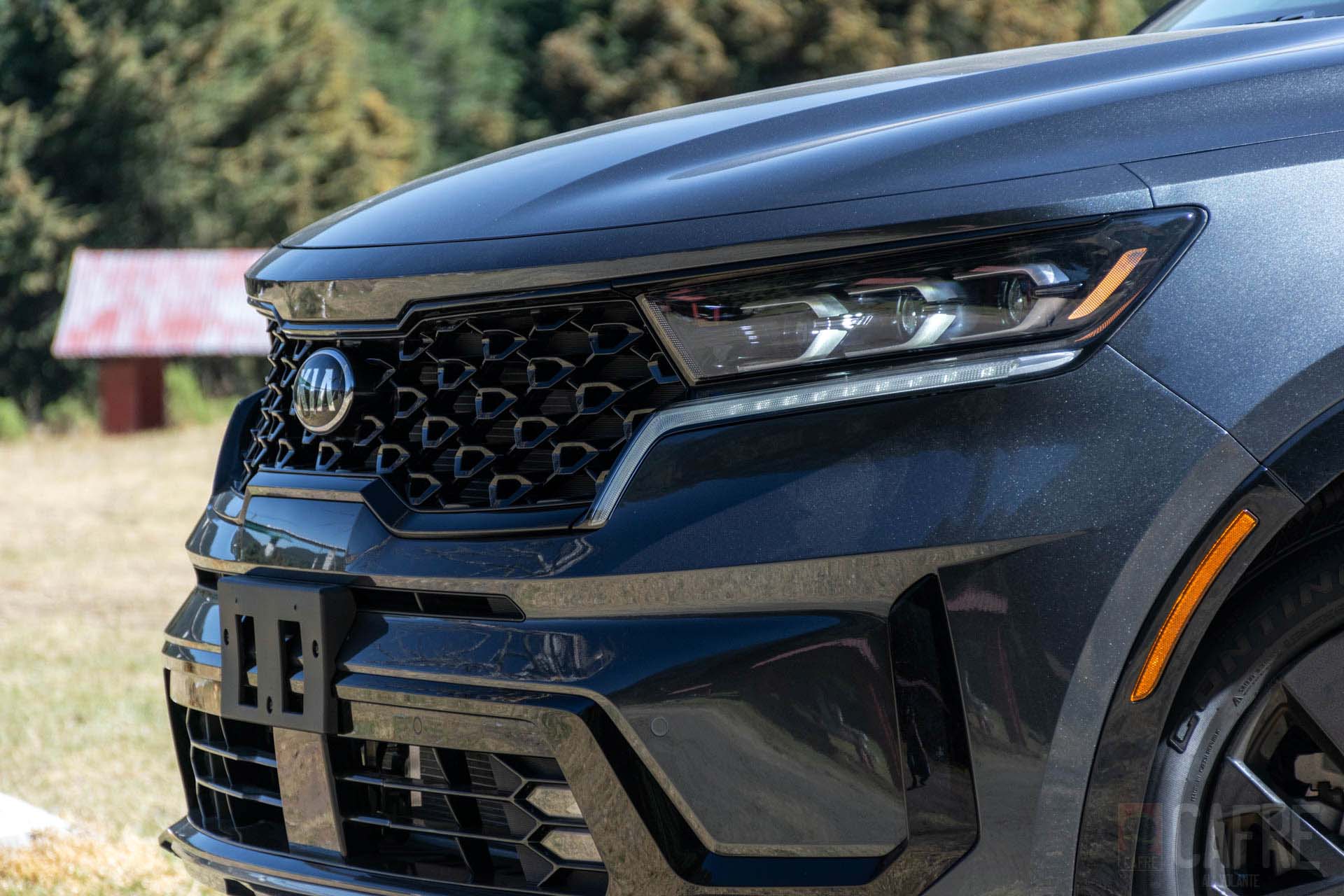 El KIA Sorento 2021 dejó de tener esa imagen de un vehículo de los suburbios y ahora nos muestra que tiene toda la actitud de irse de aventura gracias a su nuevo diseño. Resalta el nuevo frente con los faros de tecnología LED que se unen con las luces diurnas. La parrilla continúa teniendo la tendencia del “Tiger nose” pero ahora es mucho más grande, en ella podemos ver el emblema de KIA rodeada por detalles tridimensionales dando un aspecto más agresivo a este SUV. Debajo de la parrilla, tendremos la toma de aire central que incorpora el sensor para el control crucero al centro y los elegantes faros de niebla de LED a los extremos de esta. Por si fuera poco, también tendremos unas pequeñas tomas de aire para las ruedas.