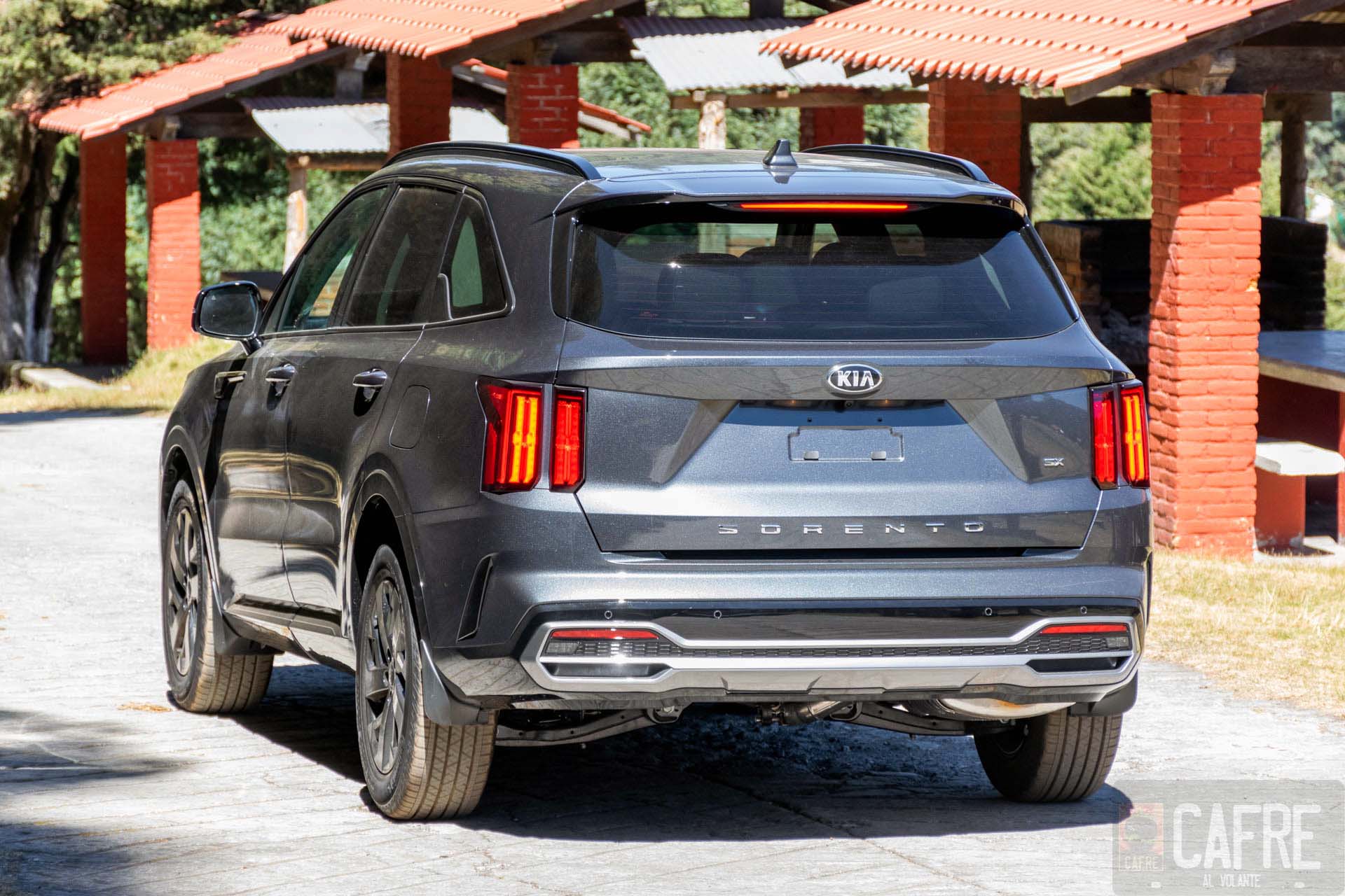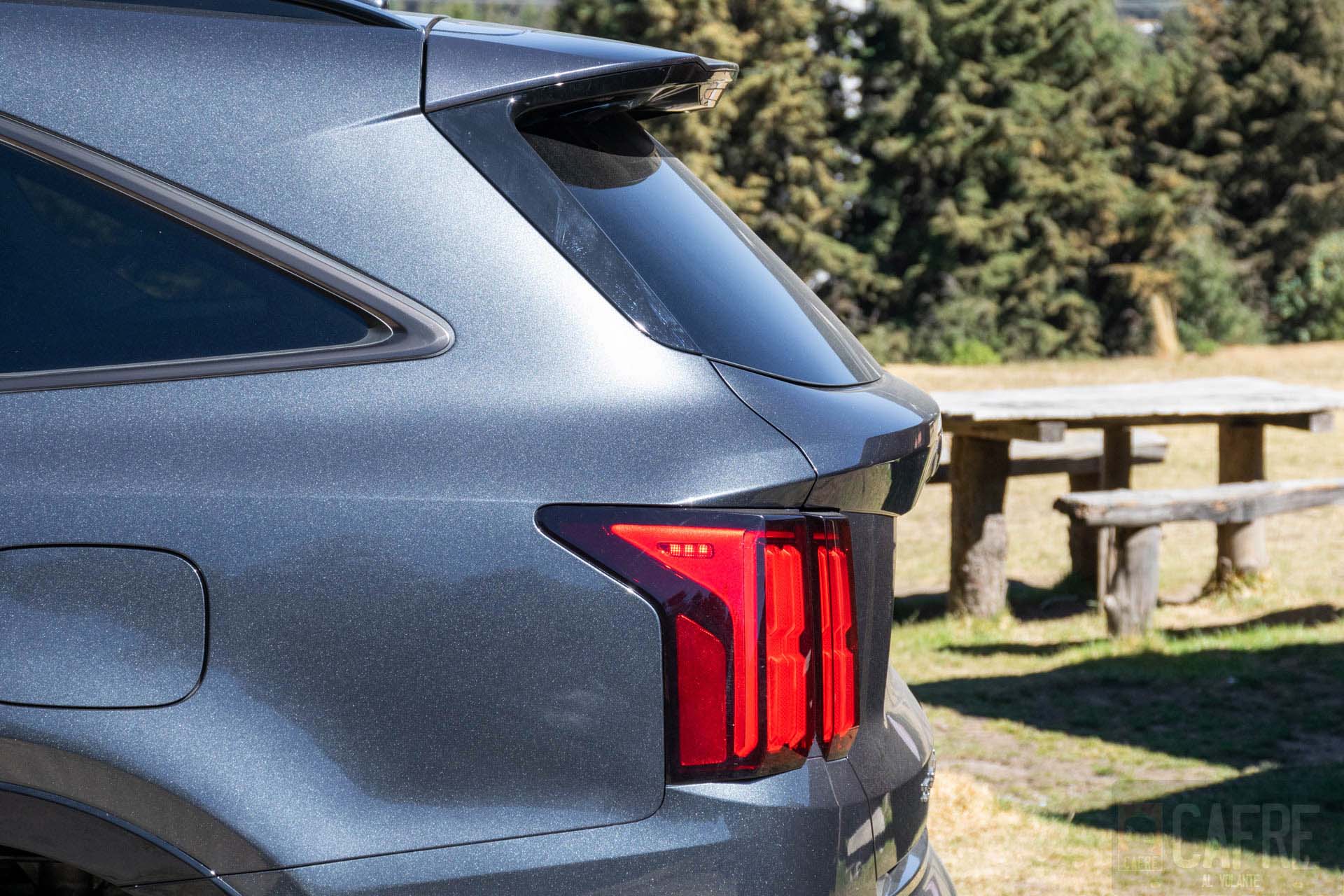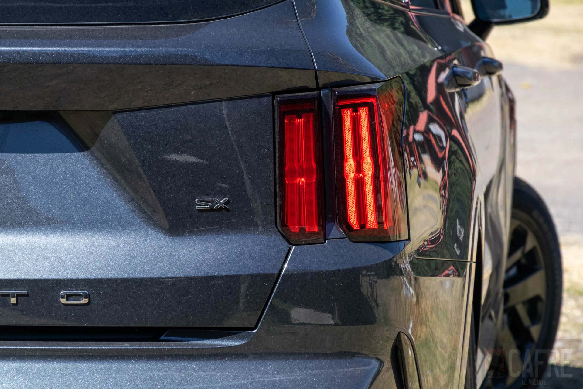 La parte controversial en todo este diseño del KIA Sorento es en la parte trasera con las luces de freno, estas prácticamente son dos rectángulos que en proporción con la carrocería se ven pequeñas, aunque a mí me gustaron bastante porque le dan un aspecto elegante (recordándome a otro SUV de lujo con este mismo tipo de luces) hubo quienes no estuvieron de acuerdo con esta parte. Sobresale también en la parte inferior de la quinta puerta vemos el nombre de “SORENTO”. Como ya hemos visto con algunos modelos de KIA, las luces de reversa se encontrarán en la parte inferior de la fascia, donde también tendremos unas molduras que a primera vista fuesen salidas de escapes.