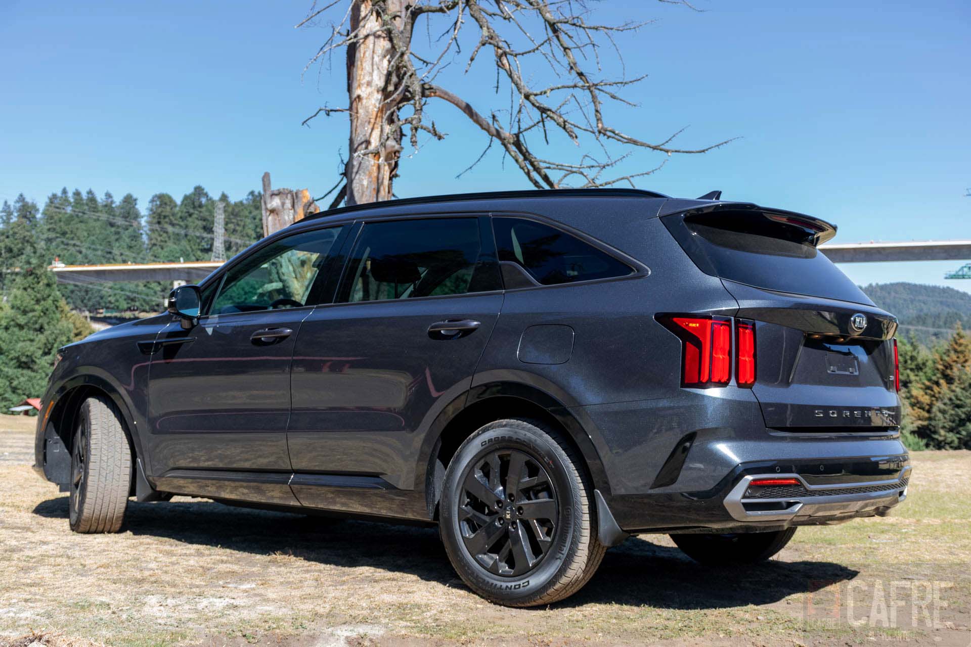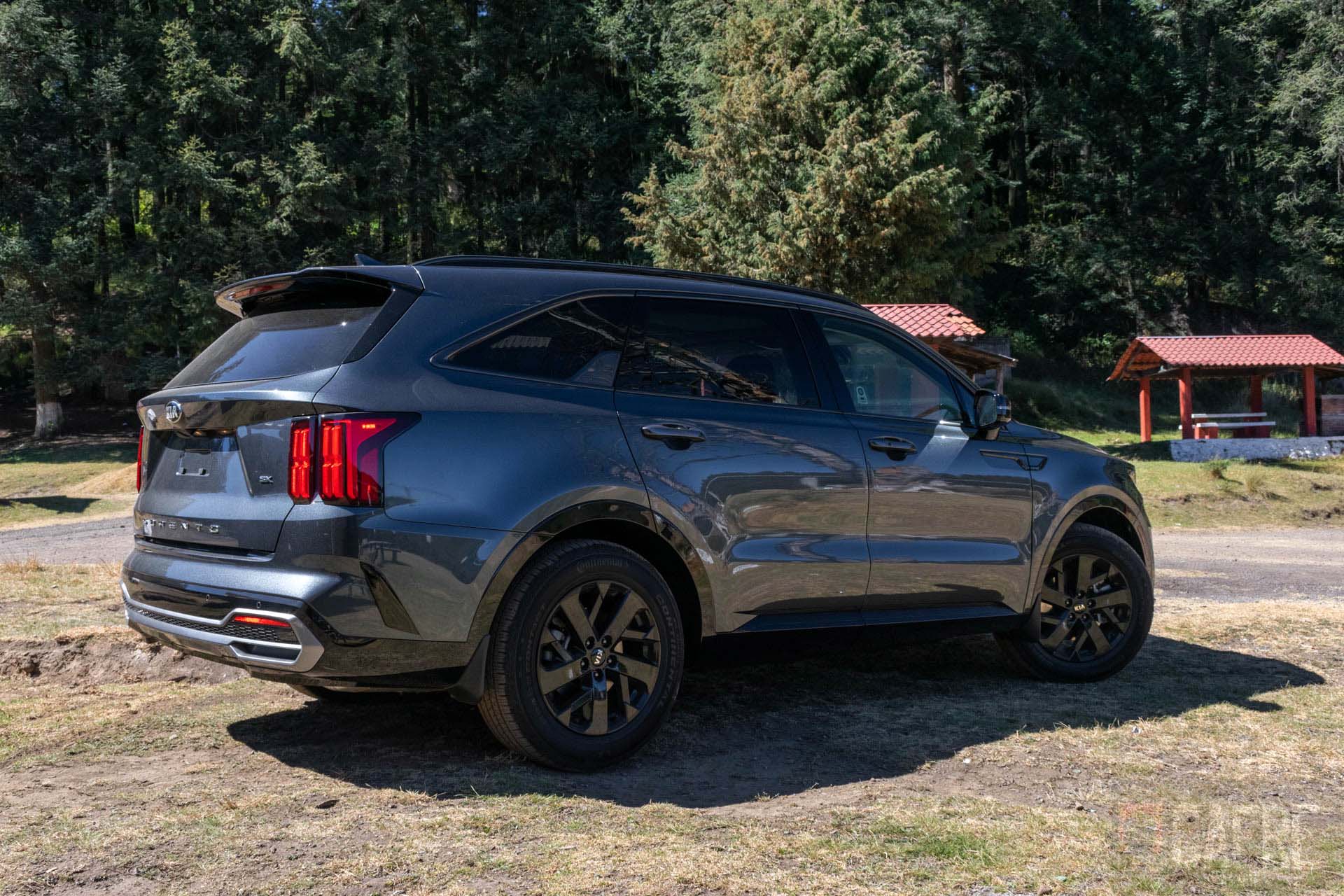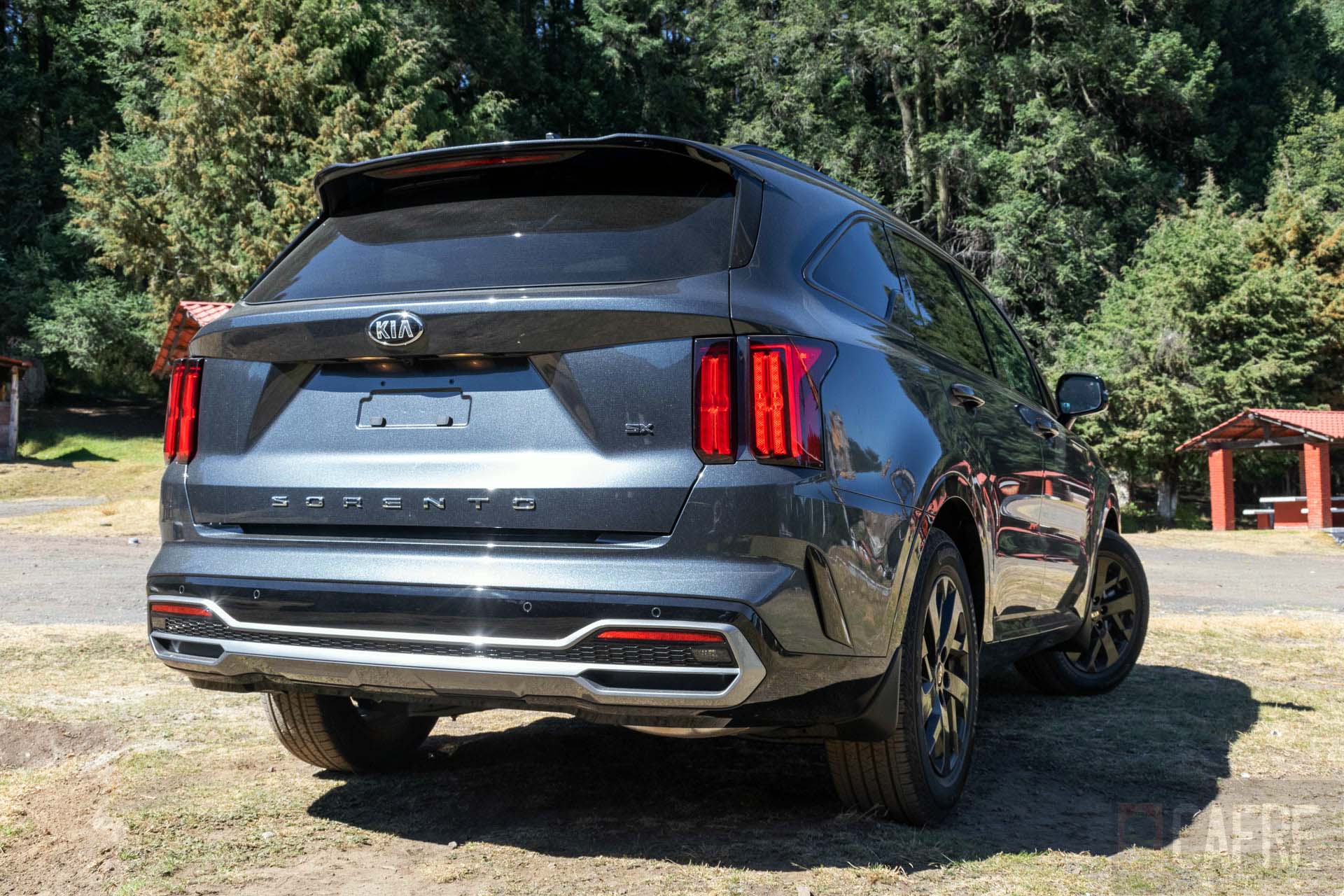 La parte controversial en todo este diseño del KIA Sorento es en la parte trasera con las luces de freno, estas prácticamente son dos rectángulos que en proporción con la carrocería se ven pequeñas, aunque a mí me gustaron bastante porque le dan un aspecto elegante (recordándome a otro SUV de lujo con este mismo tipo de luces) hubo quienes no estuvieron de acuerdo con esta parte. Sobresale también en la parte inferior de la quinta puerta vemos el nombre de “SORENTO”. Como ya hemos visto con algunos modelos de KIA, las luces de reversa se encontrarán en la parte inferior de la fascia, donde también tendremos unas molduras que a primera vista fuesen salidas de escapes.