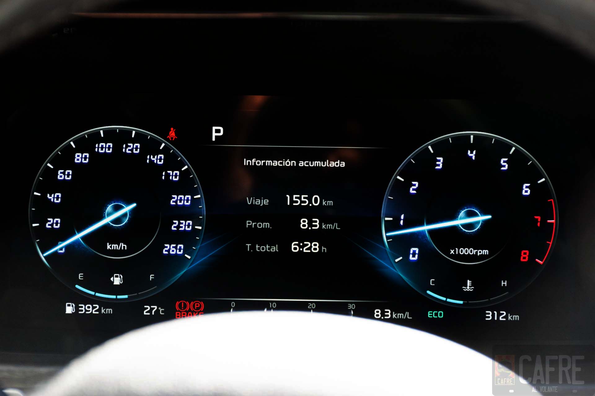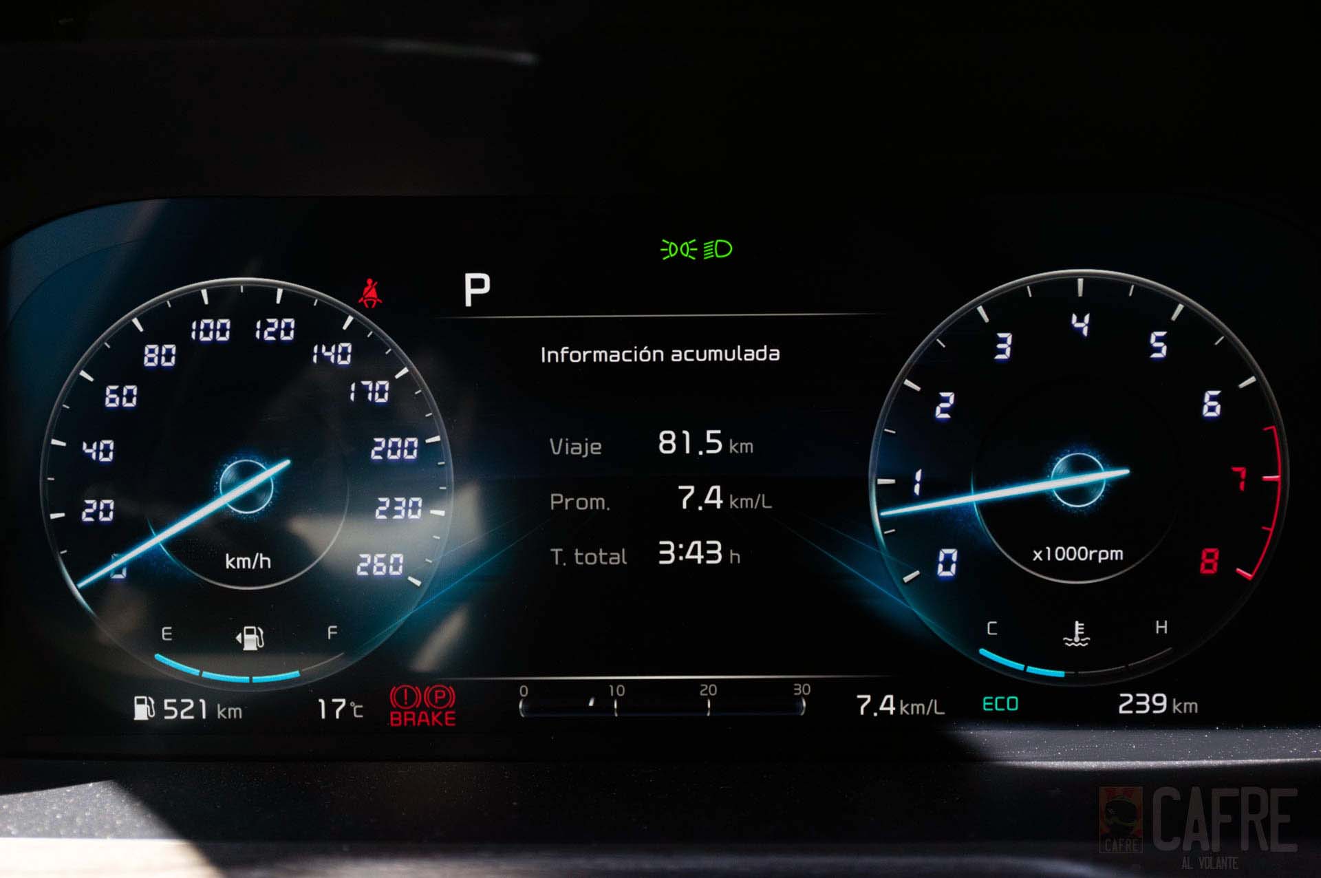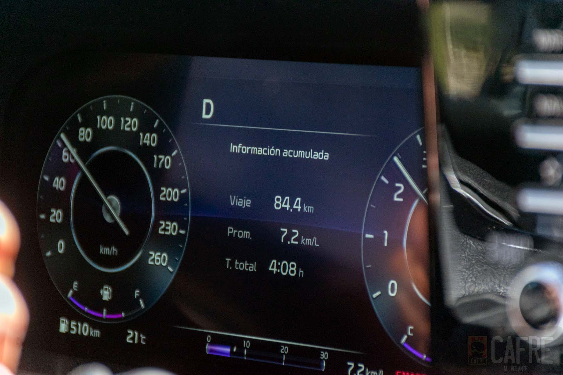 En nuestra corta prueba, con un tanque de 67 L el KIA Sorento 2021 nos indica un rango de autonomía arriba de los 600 km con el tanque lleno, pero como recordarán, esta cifra puede disminuir según tu conducción. Siendo cuidadosos con el pedal y en modo ECO tuvimos un promedio de 8.4 km/l, haciendo nuestros trayectos a velocidades moderadas y en la ciudad. Al momento de cambiar al modo SPORT para sortear las pendientes de la carretera, nuestro consumo se redujo a 7.4km/l ya que solicitábamos toda la potencia posible del motor 2.5L para mantener el ritmo deseado.