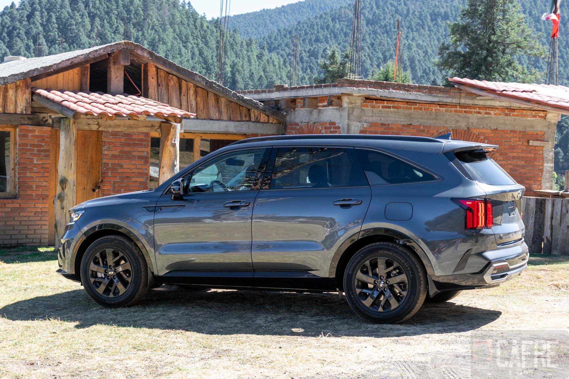 A los lados podemos ver las líneas de diseño que le dan esa robustez al KIA Sorento. En la versión SX tenemos rines de 18 pulgadas en acabado en negro. A pesar de tener un diseño limpio a los costados, tendremos molduras en la parte inferior de las puertas y otra muy estética a la altura de la salpicadera. Desde este ángulo, podemos notar el diseño del spoiler trasero dándole ese aspecto deportivo al Sorento