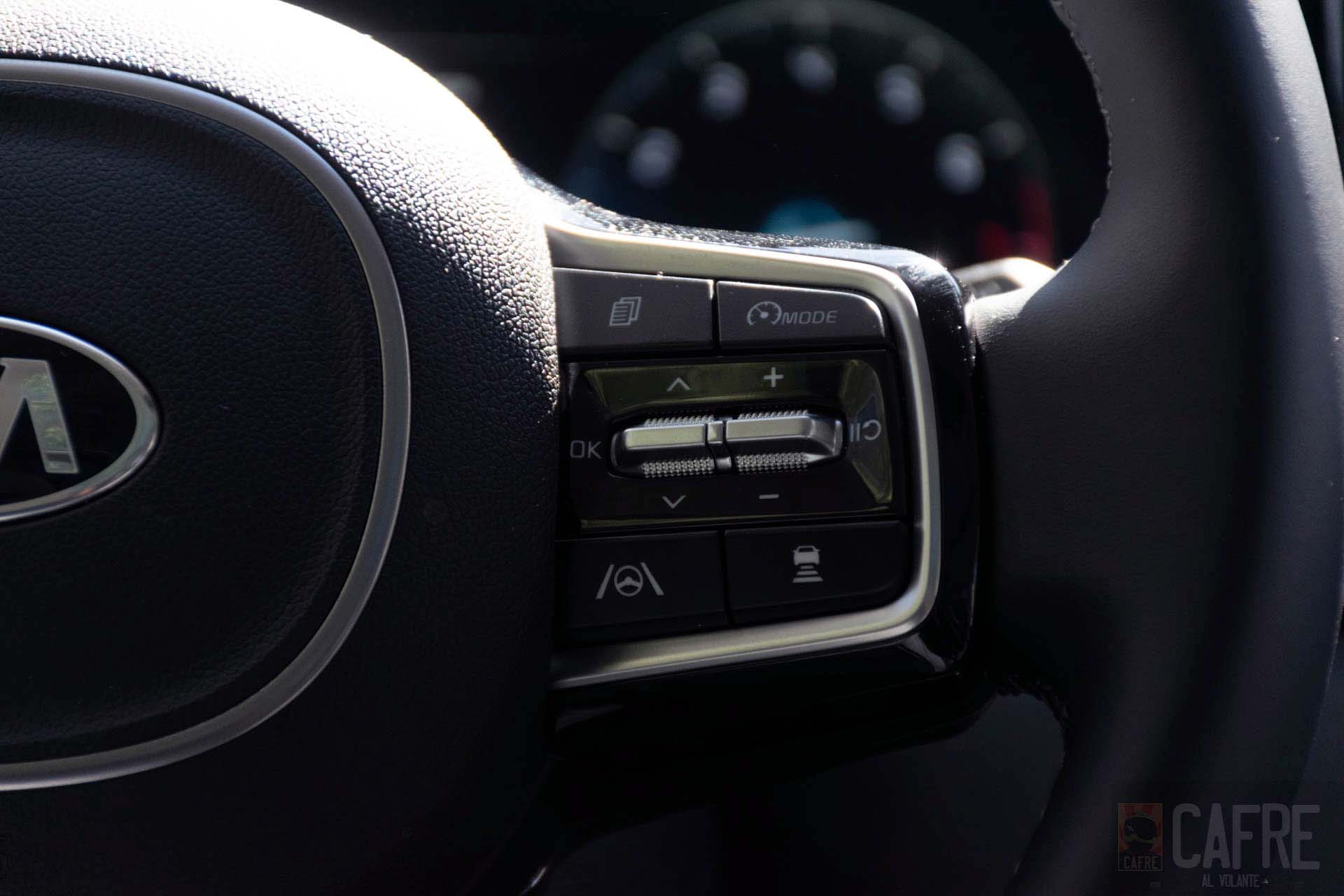 También estrena el sistema Drive Wise que es la incorporación de asistencias en la conducción por parte de KIA, además del control de estabilidad (ESC) y asistente en pendientes (HAC), ahora gracias a la incorporación de radares y sensores en la carrocería contaremos con el Control Crucero Inteligente (SCC) con función Stop & Go, la función de este sistema es mantener una velocidad determinada, pero el vehículo puede reducirla si hay un auto al frente, también puede detenerse por completo. Este sistema también se puede regular la velocidad y distancia entre un auto y otro a través del volante. Otra asistencia que se puede activar desde el volante es el sistema de conservación de carril (LKA) que a través de una cámara colocada en la parte trasera del espejo retrovisor, mantendrá al Sorento al centro del carril, dependiendo de la configuración podrá activar una alerta sonora, hacer vibrar el volante o asistir en la dirección para mantener este curso, deben recordar que para que este sistema funcione, los carriles deben de estar bien marcados, para saber si está activado o no, veremos un volante en color verde indicando que si está disponible. Por último, gracias a la incorporación de un radar tendremos el sistema de Evasión de Colisión Frontal que frenará de emergencia si detecta un obstáculo al frente emitirá una alerta auditiva y visual y si el conductor no reacciona en cierto tiempo se activarán los frenos de forma automática. Con este sistema Drive Wise, nuestros trayectos serán más seguros debido a que estaremos siendo monitoreados todo el tiempo mientras conducimos (recordando que deben de estar activados).