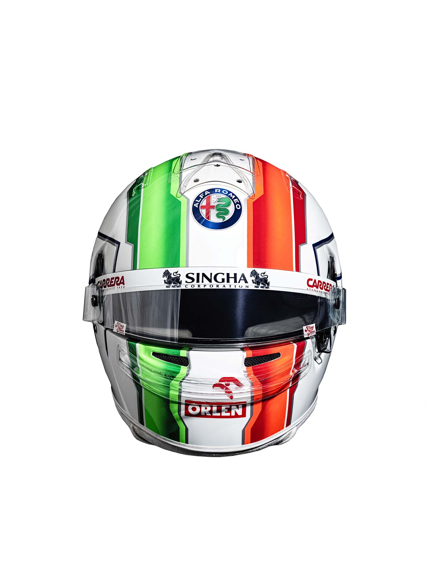 El logo Alfa Romeo está flanqueado por el Quadrifoglio (trébol de cuatro hojas), tradicionalmente asociado a los proyectos deportivos de Alfa Romeo, y el logo de Autodelta, la legendaria escudería de la marca. Estos logotipos embellecen la carrocería y contribuyen a modelar la imagen de uno de los monoplazas más excepcionales de la parrilla, con un diseño clásico que simboliza la pasión y la tradición de las marcas a las que representa.
