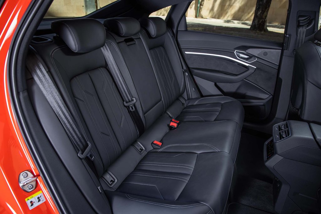 Con una distancia entre ejes de 2,928 milímetros, el Audi e-tron Sportback ofrece una gran amplitud para cinco ocupantes y su equipaje. La altura libre al techo en las plazas traseras es solo 20 milímetros menor que en el Audi e-tron. Una gran ventaja en la fila posterior es que la superficie para las piernas es prácticamente plana en toda su extensión, ya que apenas queda un pequeño escalón en el lugar del túnel central. Incluyendo el compartimiento de carga bajo el cofre delantero de 60 litros, que alberga el kit de herramientas del vehículo y el cable de carga, la capacidad total de sus maleteros es de 615 litros. Este volumen aumenta hasta los 1,655 litros si se abaten los asientos posteriores. El portón trasero cuenta con un sistema eléctrico de apertura y cierre, que puede activarse mediante el movimiento del pie de manera opcional.