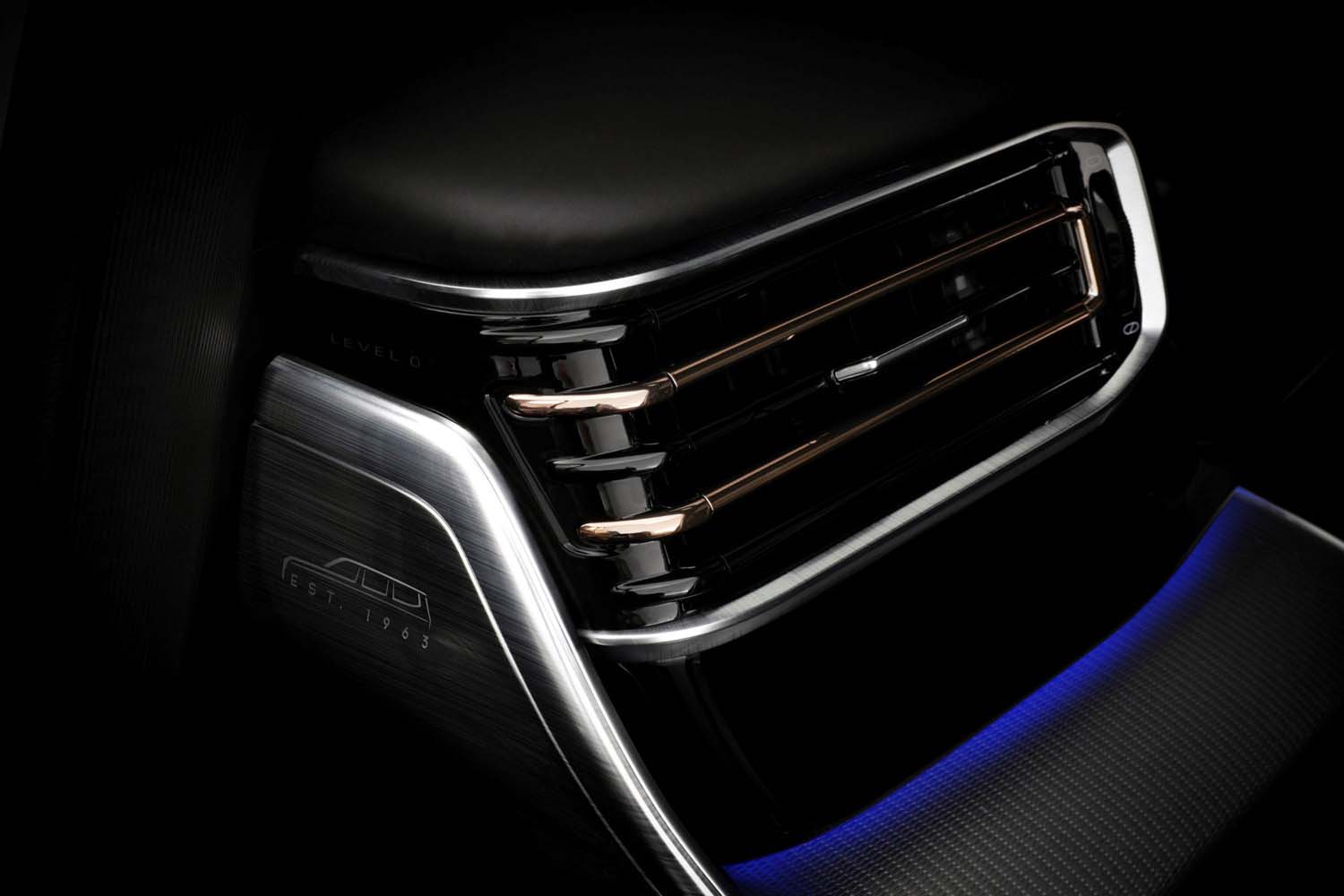 El aluminio es otro elemento clave que recubre los bordes de las salidas del sistema de ventilación y de las bocinas de las puertas, entre otros detalles.