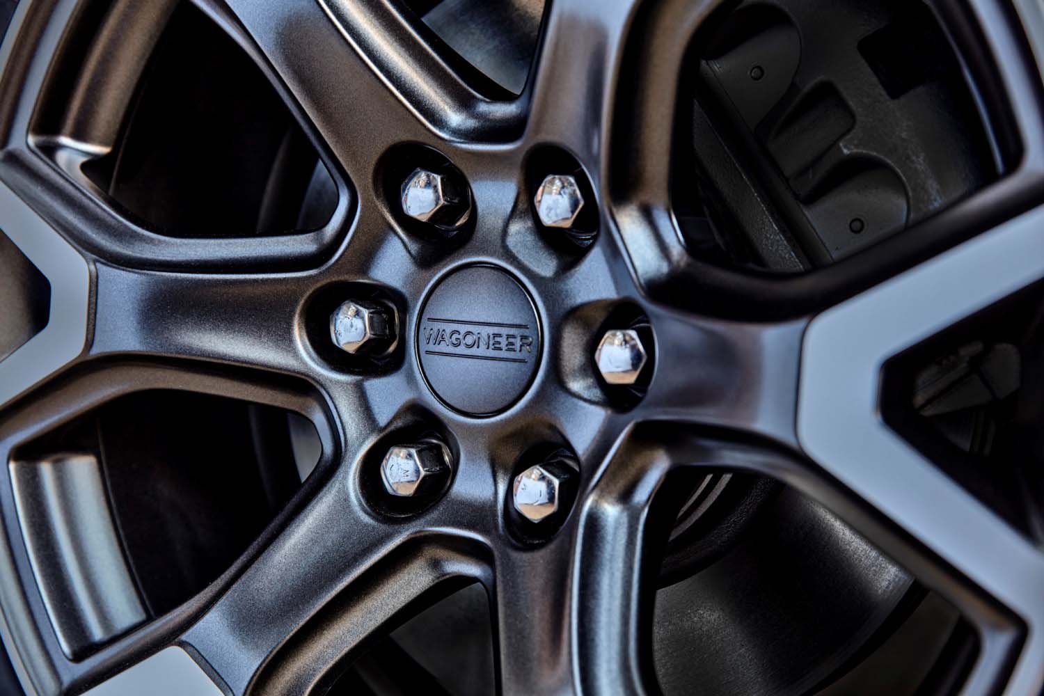 Wagoneer viene de serie con rines de 20 pulgadas, mientras que también está disponible rines opcionales pintados y pulidos de 22 pulgadas. Los modelos Grand Wagoneer vienen de serie con rines de aluminio de 20 o 22 pulgadas con cuatro acabados y texturas diferentes. Un centro de rin tridimensional que destaca el logotipo de Wagoneer está suspendida en acrílico.