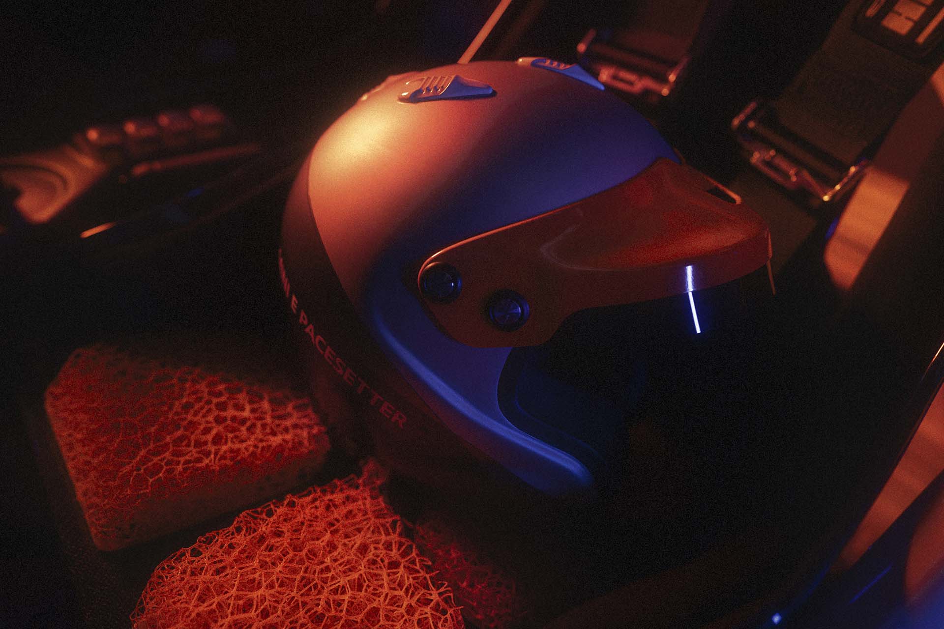 El interior se reduce al esencial absoluto; sólo quedan los asientos delanteros. El área del conductor consta de un asiento certificado con cinturón de seis puntos aprobado tanto para carreras como para uso en carretera, un volante con amortiguador de impacto de fibra de carbono de diseño minimalista y un grupo de instrumentos digitales. La pantalla de información central da paso a una cubierta de fibra de carbono para reducir aún más el peso. La consola central alberga la palanca de cambios, el freno de mano y los controles de las luces de señalización necesarias, todo en fibra de carbono expuesta. Los paneles de las puertas de fibra de carbono, igualmente pareados, con abrepuertas y ventanas, contienen correas de tela para facilitar el cierre de las puertas. Otra característica central del interior es la jaula antivuelco soldada, que maximiza la seguridad. Y el resto de la estructura interior también está pintada en el típico blanco de carreras (por razones funcionales).