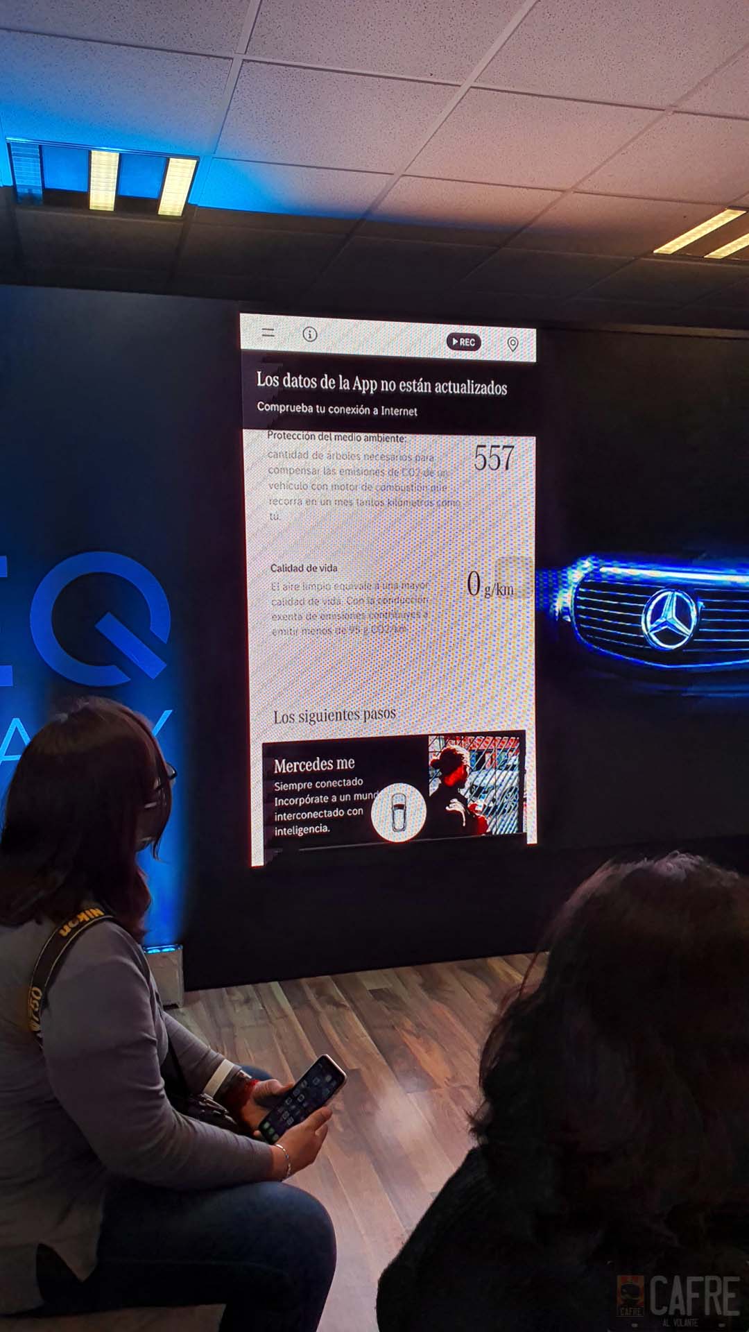 La otra aplicación que nos presentaron fue EQ-Ready, con ella Mercedes-Benz te ayuda a descubrir si tu ritmo de vida puede ser compatible con la electromovilidad comparando el desempeño de tu auto con un Mercedes Benz con tecnología híbrida o eléctrica (EQ Power) por 7 días. Con EQ Ready, analizará tu comportamiento en tiempo real al conducir para descubrir viable para ti tener un auto híbrido o eléctrico además de mostrarte las emisiones de CO2 que puedes llegar a producir.