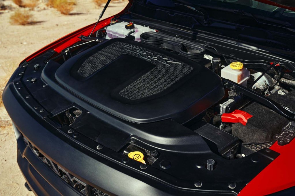 En el caso de la Ram 1500 TRX, este motor va acoplado a una transmisión TorqueFlite 8HP95 de 8 velocidades que actúa y activa la relación idónea en función de diferentes variables como picos del torque, kick-down del acelerador, aceleración lateral y longitudinal, fricción, reducciones y calidad de la superficie.