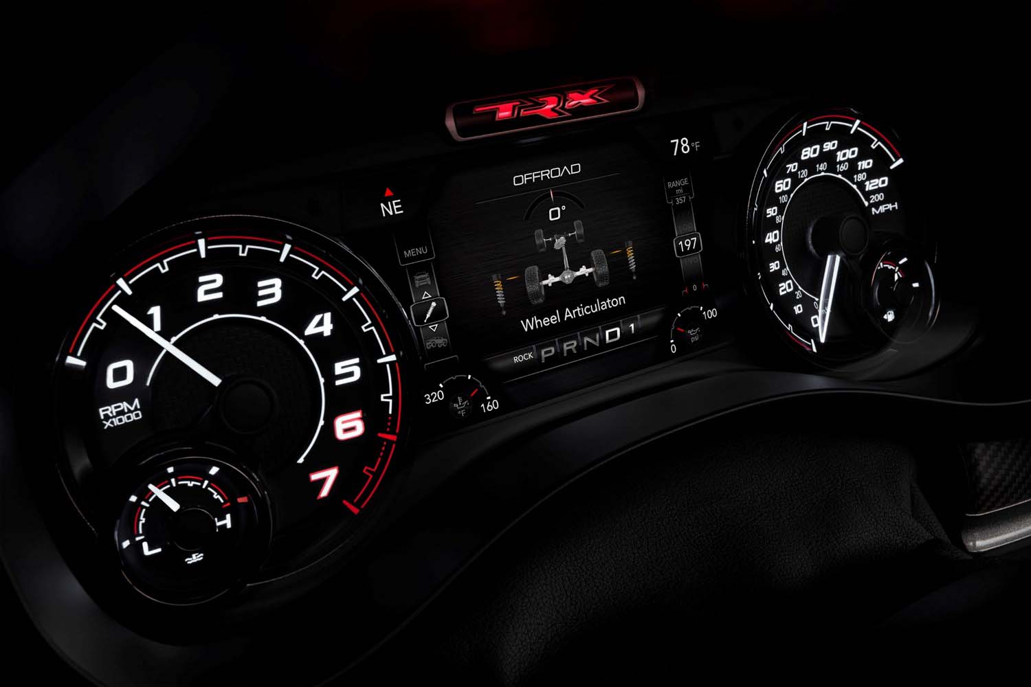 Como ayuda, la Ram TRX también incorpora una pantalla TFT de 7 pulgadas exclusiva del TRX con colores y gráficos únicos, y relojes reconfigurables.