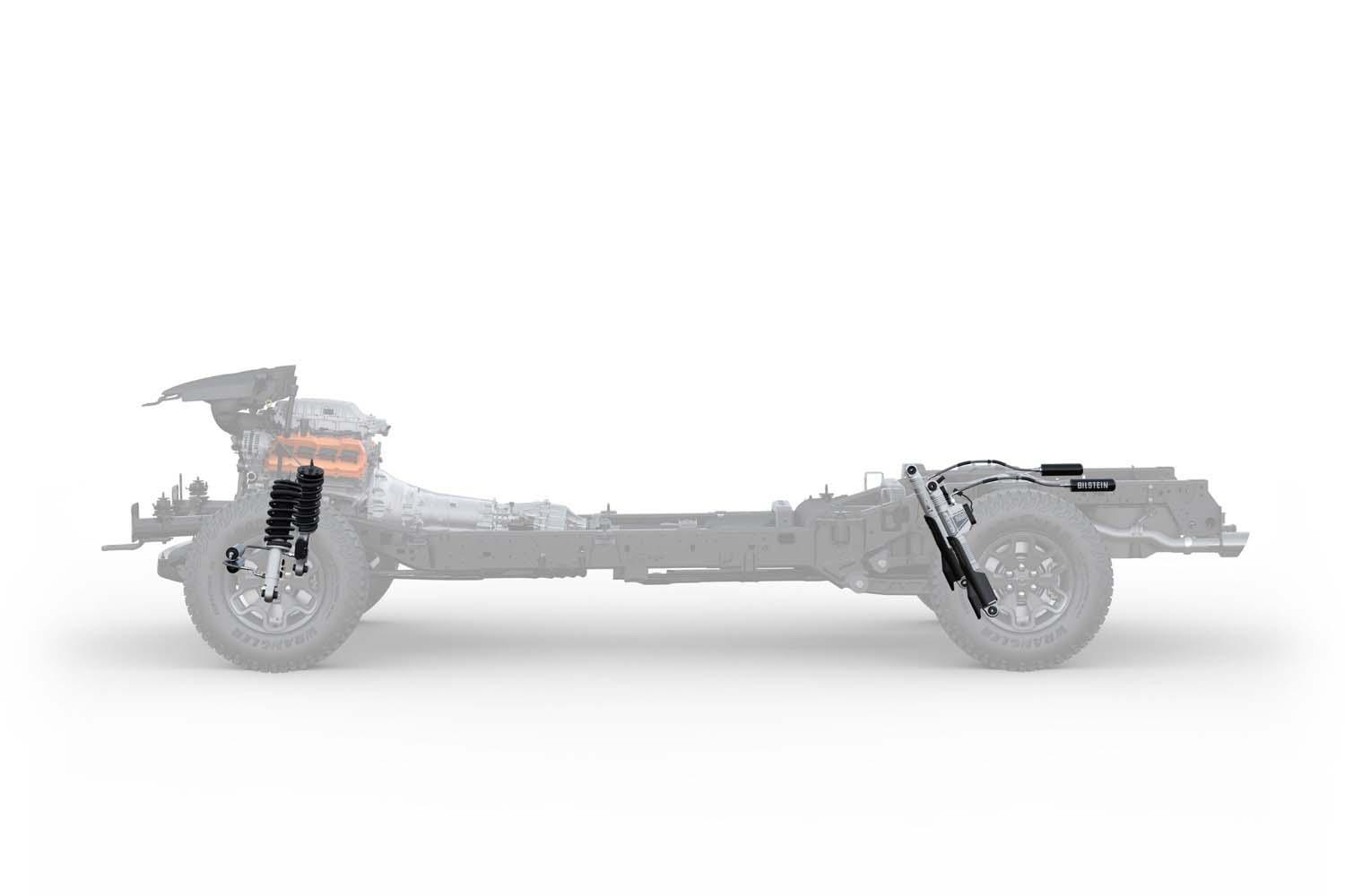 Los nuevos amortiguadores adaptativos Bilstein Black Hawk e2 de 2.5 pulgadas proporcionan un tiempo de reacción rápido, una amortiguación imbatible y una mayor disipación del calor, lo que los hace especialmente aptos para correr sobre terrenos complicados a velocidades a más de 160 km/h.