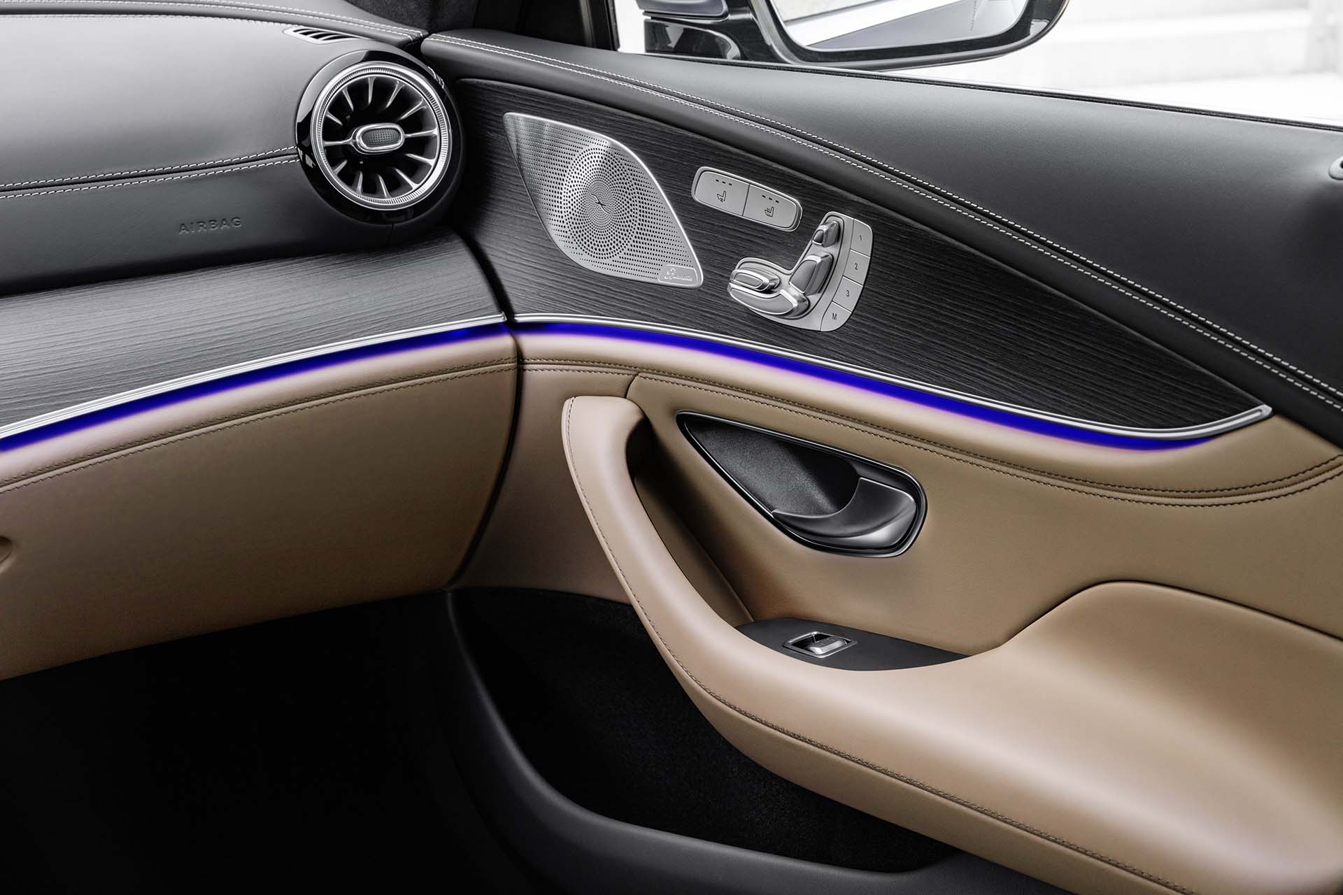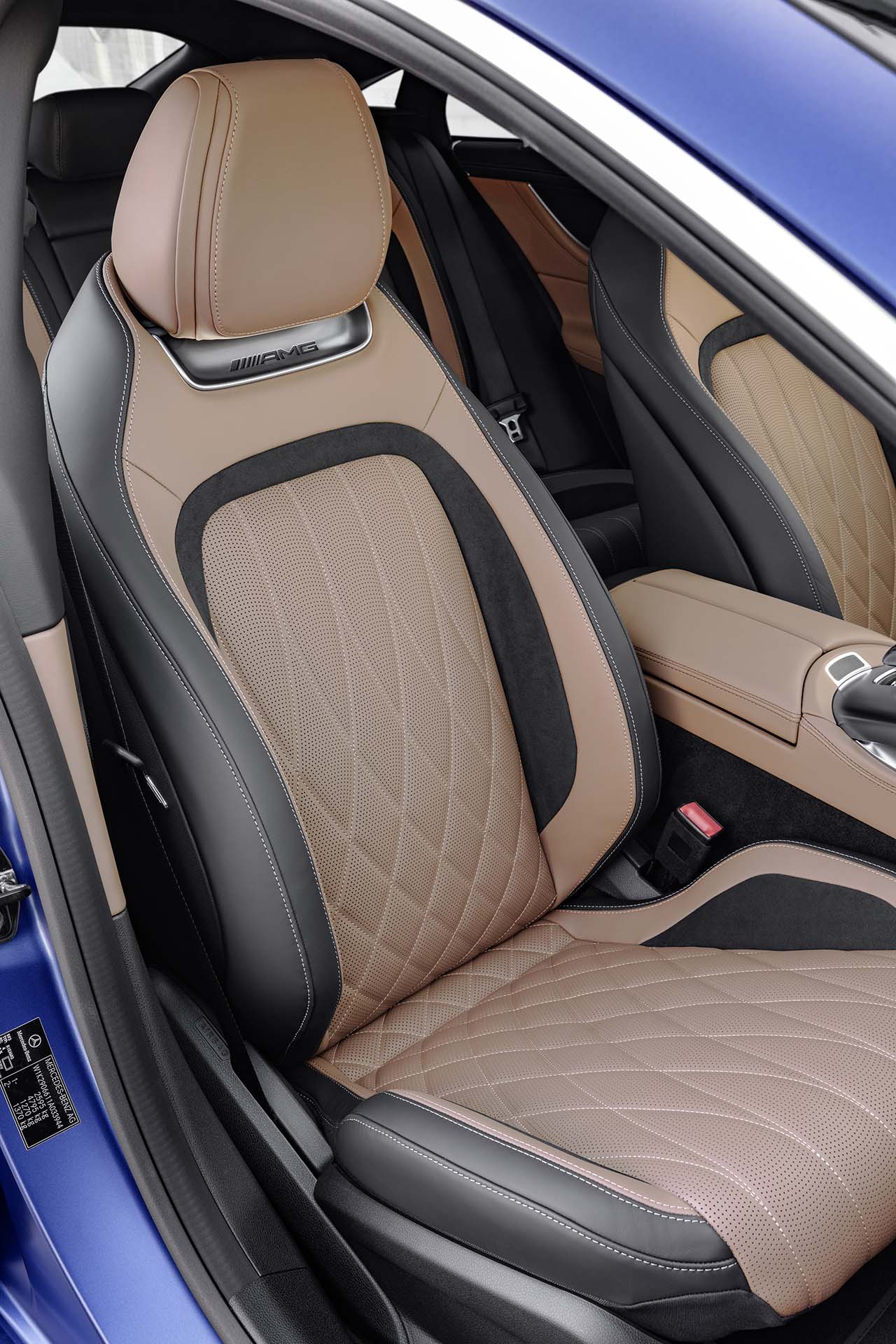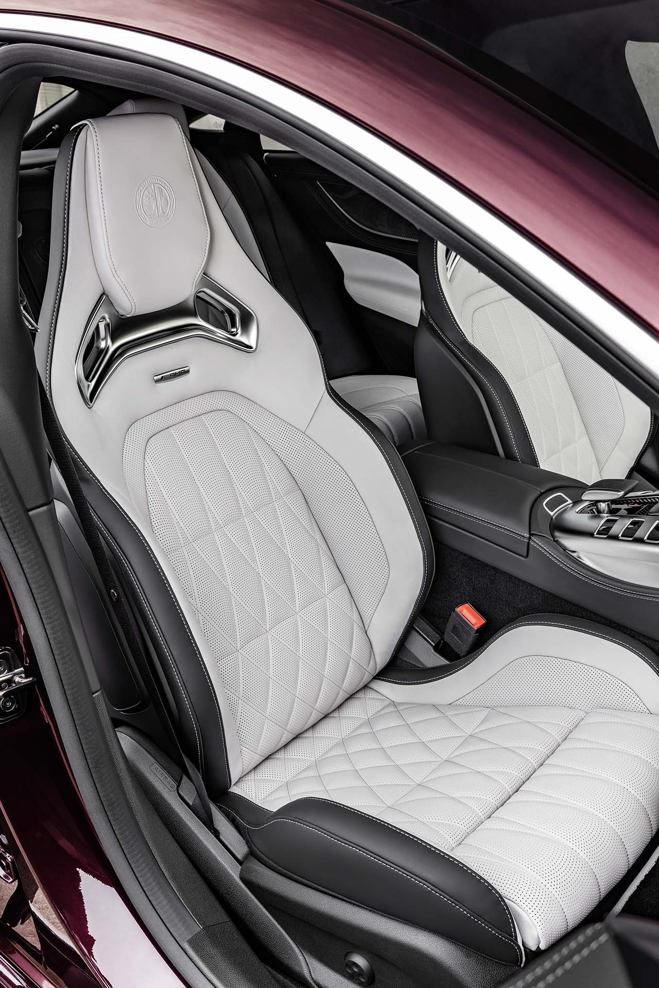 La renovación del interior tiene también como fin permitir un mayor grado de personalización del vehículo. Con nuevos colores es posible acentuar el cariz deportivo o el ambiente lujoso del AMG GT Coupé de 4 puertas. Por ejemplo, la nueva combinación de cuero exclusivo napa gris titanio pearl/negro con costuras de adorno en color de contraste amarillo o el noble cuero exclusivo napa tartufo/negro con el pespunteado en rombos STYLE. Junto a los apreciados asientos bicolor, la cartera de equipamiento para el interior incluye ahora cinco colores adicionales para el tapizado en cuero exclusivo napa STYLE: marrón Siena, rojo clásico, azul yate, blanco profundo y gris neva. En esta ejecución, los asientos delanteros y traseros presentan un acabado unicolor en el color del equipamiento elegido, al igual que los apoyabrazos en las puertas y el aro del volante. Alfombrillas con ribetes de cuero en color a tono y logotipo AMG bordado completan el noble carácter artesanal del acabado.