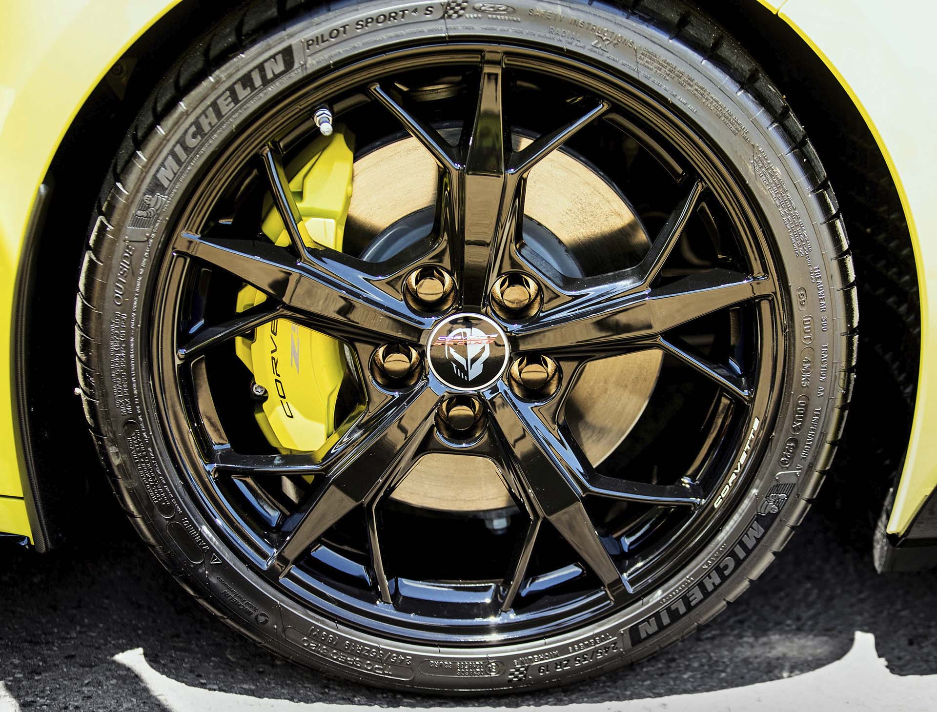 En su interior, esta Edición Especial de Corvette Stingray 2022 cuenta con una cabina Strike Yellow y Sky Cool Gray que evoca el tema de carreras exterior amarillo y gris, con GT2 estándar, junto con cinturones de seguridad amarillos y una placa numerada C8.R de Edición Especial.