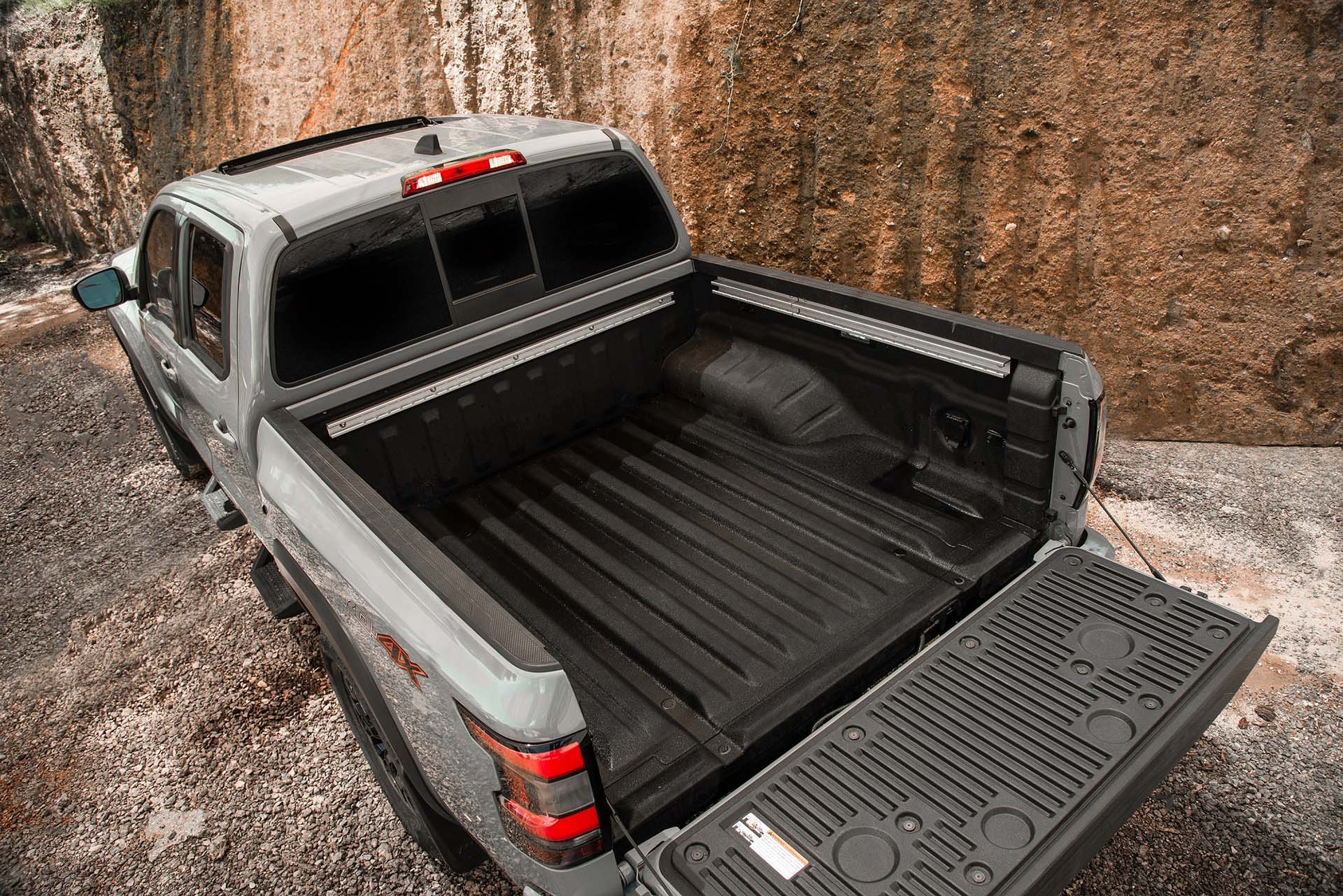 Nissan Frontier V6 PRO-4X cuenta con el motor 3.8L de 6 cilindros más potente del sub segmento con 310 hp/ 281 lb-pie, novedosa transmisión automática de 9 velocidades, capacidades off-road con bloqueo de diferencial trasero electrónico, 3 placas protectoras de la parte baja del vehículo (de motor, caja de transferencia y tanque de gasolina), 4×4 Shift on The Fly (permite cambiar de tracción 4×2 a 4×4 alta en cualquier momento sin necesidad de detener el vehículo), nueva suspensión con amortiguadores de la marca Bilstein, llantas de 17” todoterreno y capacidad de arrastre de 2,821 kg, capacidad de carga de 499 kg, área de carga con bedliner tipo espreado e iluminación LED, tomacorriente de 120V (400W), y sistema utility track (3 canales utilitarios en caja y ganchos movibles sujetadores de carga).