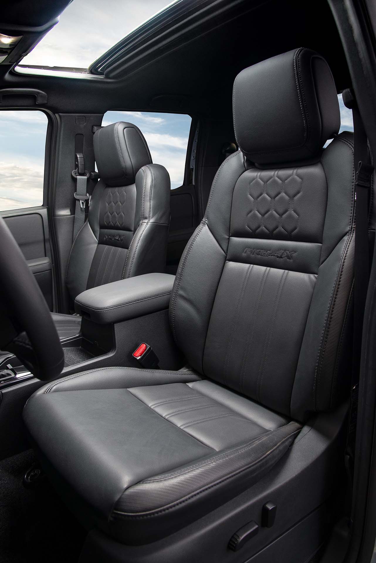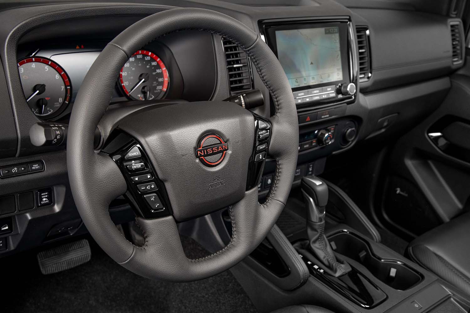 Nissan Frontier V6 PRO-4X llegará con un diseño exterior robusto con nueva Parrilla e Iluminación LED, antena tipo aleta de tiburón, quemacocos, estribos laterales, espejos exteriores calefactables. Al interior destaca el nuevo diseño de volante con el logotipo Nissan en acentos color naranja, Audio Fender con 8 Speakers y Dual Subwoofer y aire acondicionado de doble zona con asientos de piel calefactables Zero Gravity, asiento abatible, respaldo de asiento plegable y descansabrazos, pantalla touch de 9”, Apple CarPlay y Android Auto, pantalla de asistencia de manejo de 7” a color, cargador inalámbrico, telemática con WiFi y 4 conectores USB tipo A y C.