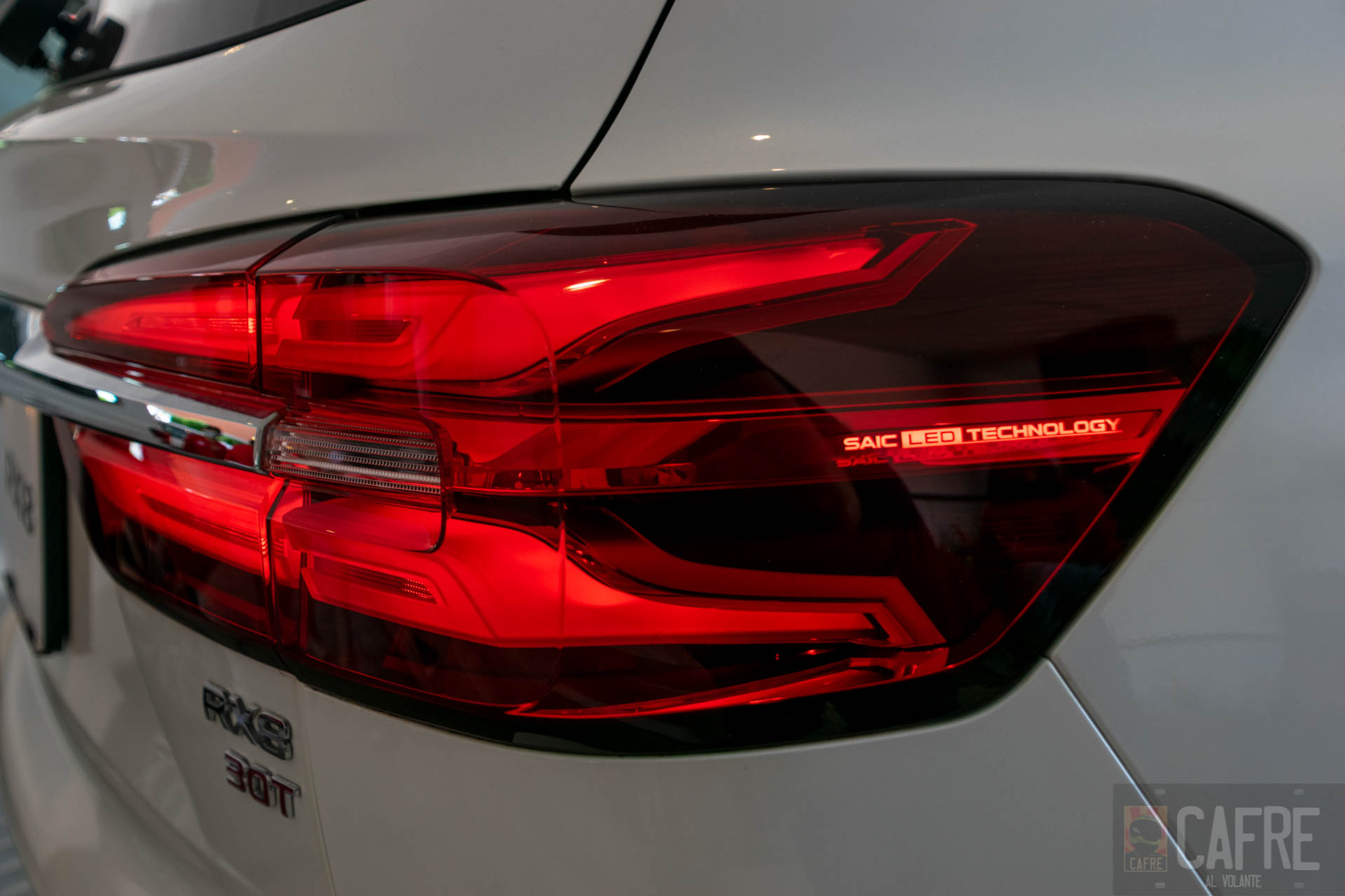 La parte trasera resaltarán sus luces LED y también tendrán la leyenda de “SAIC LED Technology” en ellas, pero a diferencia de las delanteras, estas son en rojo. Para darle “fluidez” a la parte trasera, las luces estarán unidas por una moldura en cromo entre el emblema trasero y el porta placas. Como detalles tendremos los emblemas de AWD, RX8, 30T en la quinta puerta, que tiene apertura y cierre automático por botón.