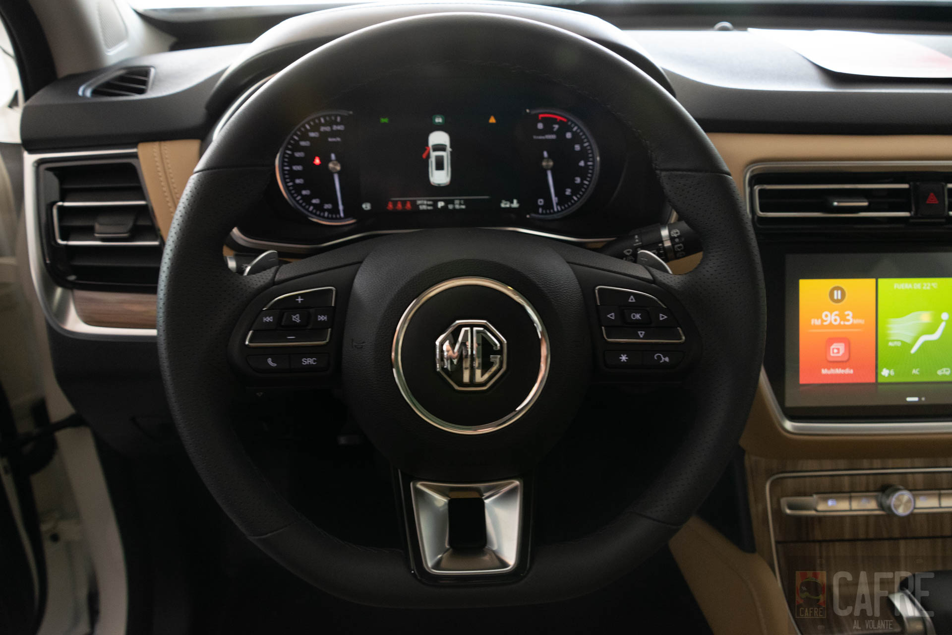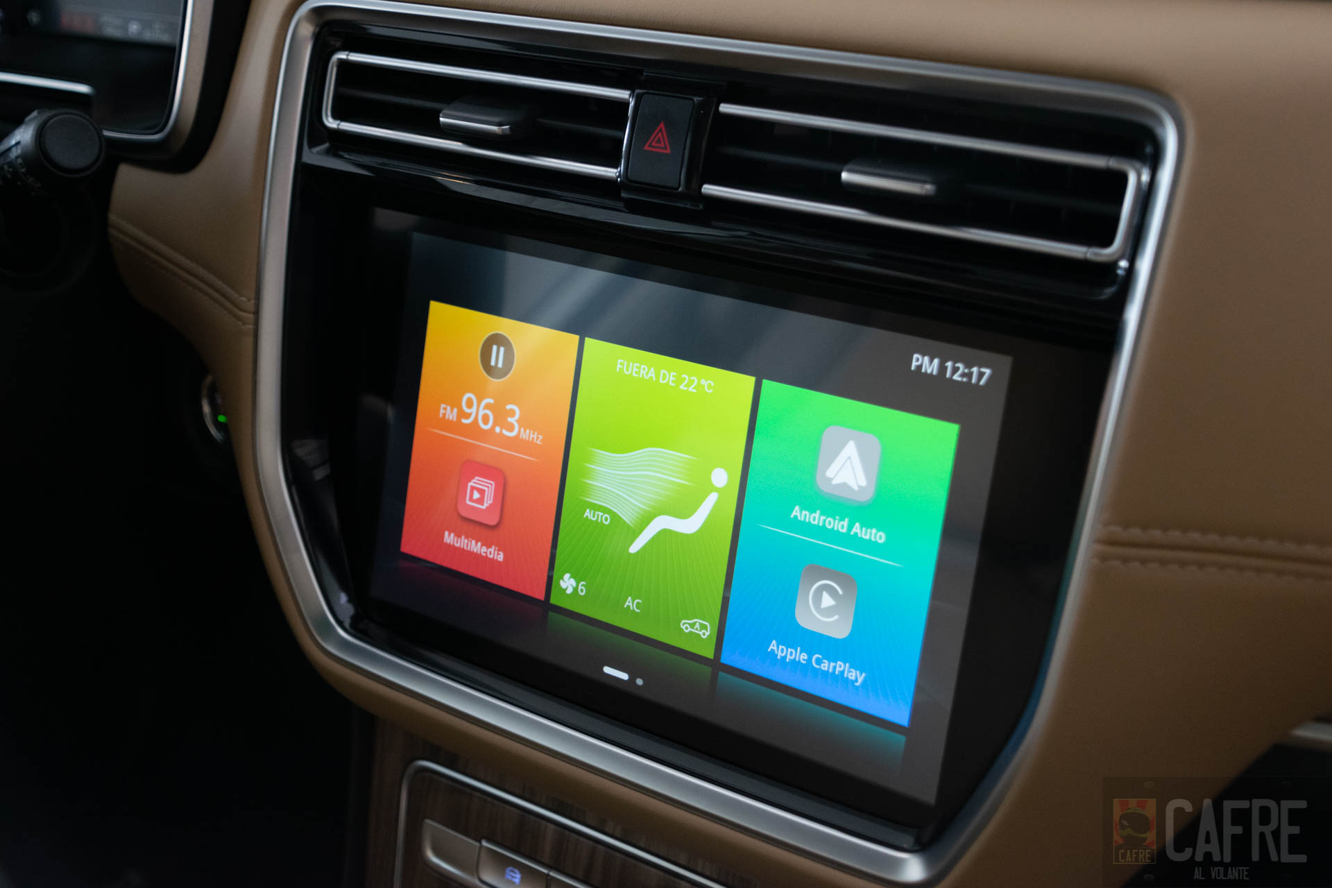 Desde el asiento del conductor, el volante multifunción que es el mismo que los demás modelos, este incorpora las funciones para el sistema de audio, comandos de voz y funciones que se mostrarán en la pantalla de 7 pulgadas de la computadora de viaje en el panel de instrumentos. Al centro del tablero la pantalla de 10.1 pulgadas llamará tu atención debido a los colores llamativos que esta puede tener. En conectividad tendremos Android Auto y Apple CarPlay además de Bluetooth y Mirror Link para el celular, debajo de esta pantalla tendremos un cargador inalámbrico que se oculta detrás de una compuerta debajo de los controles del audio y del aire acondicionado.