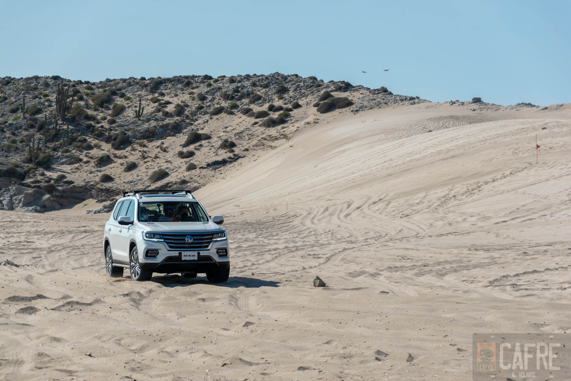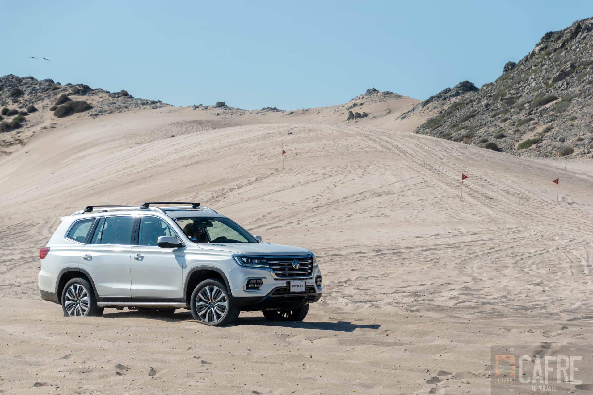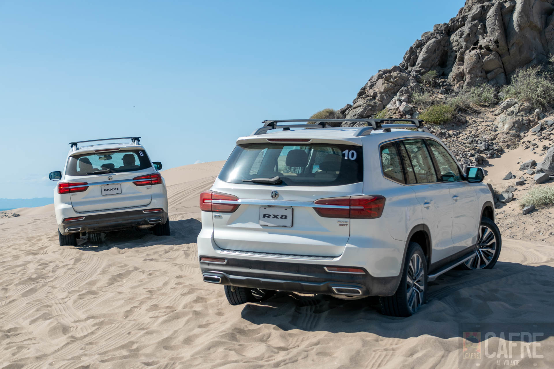 Al llegar a las dunas, nos esperaban el personal de MG para hacer un ajuste a la presión de las llantas, al desinflarlas nos permitiría tener mayor superficie de contacto en la arena. Ahora con el modo de manejo 4L (50:50) el reductor de velocidad se activa para darle mayor tracción al RX8 al girar más lento los neumáticos. Con este modo fue como iniciamos las pruebas todo terreno, entre pendientes muy inclinadas y poca adherencia por la arena suelta, el RX8 iba a demostrar sus capacidades 4×4.