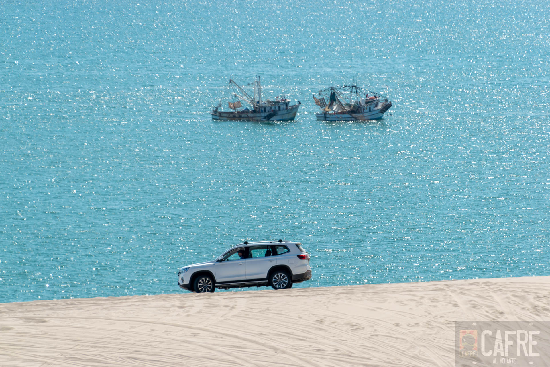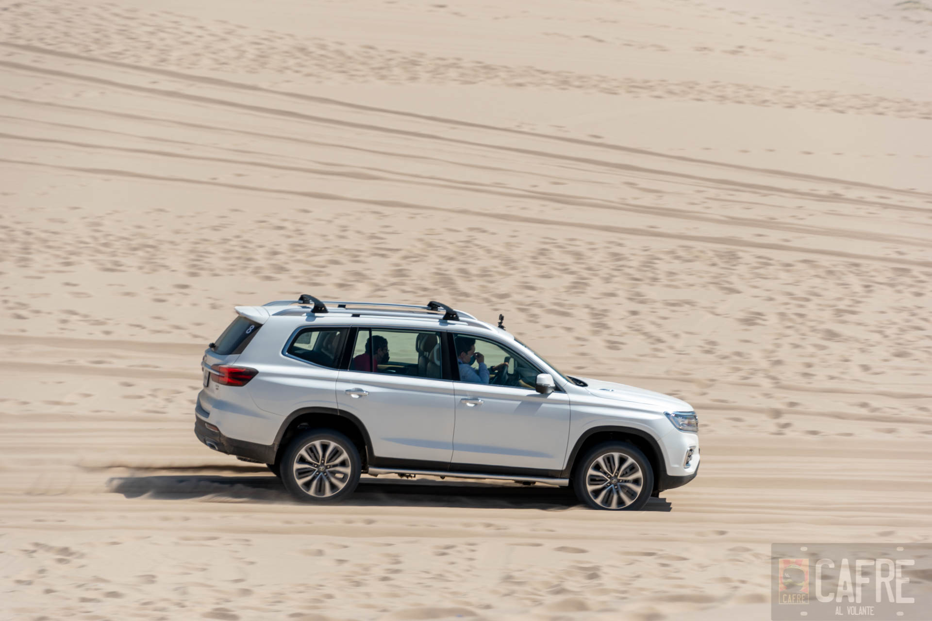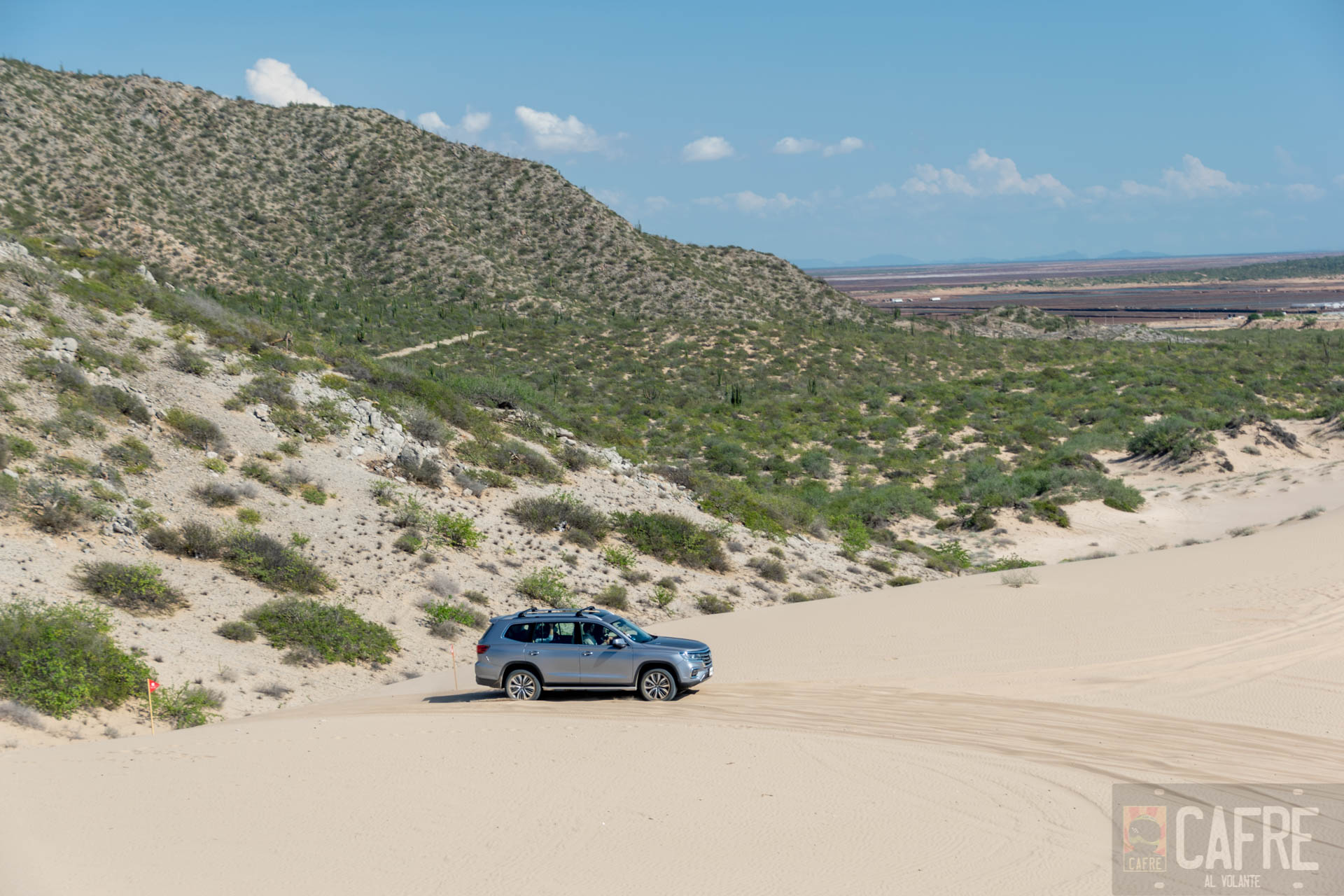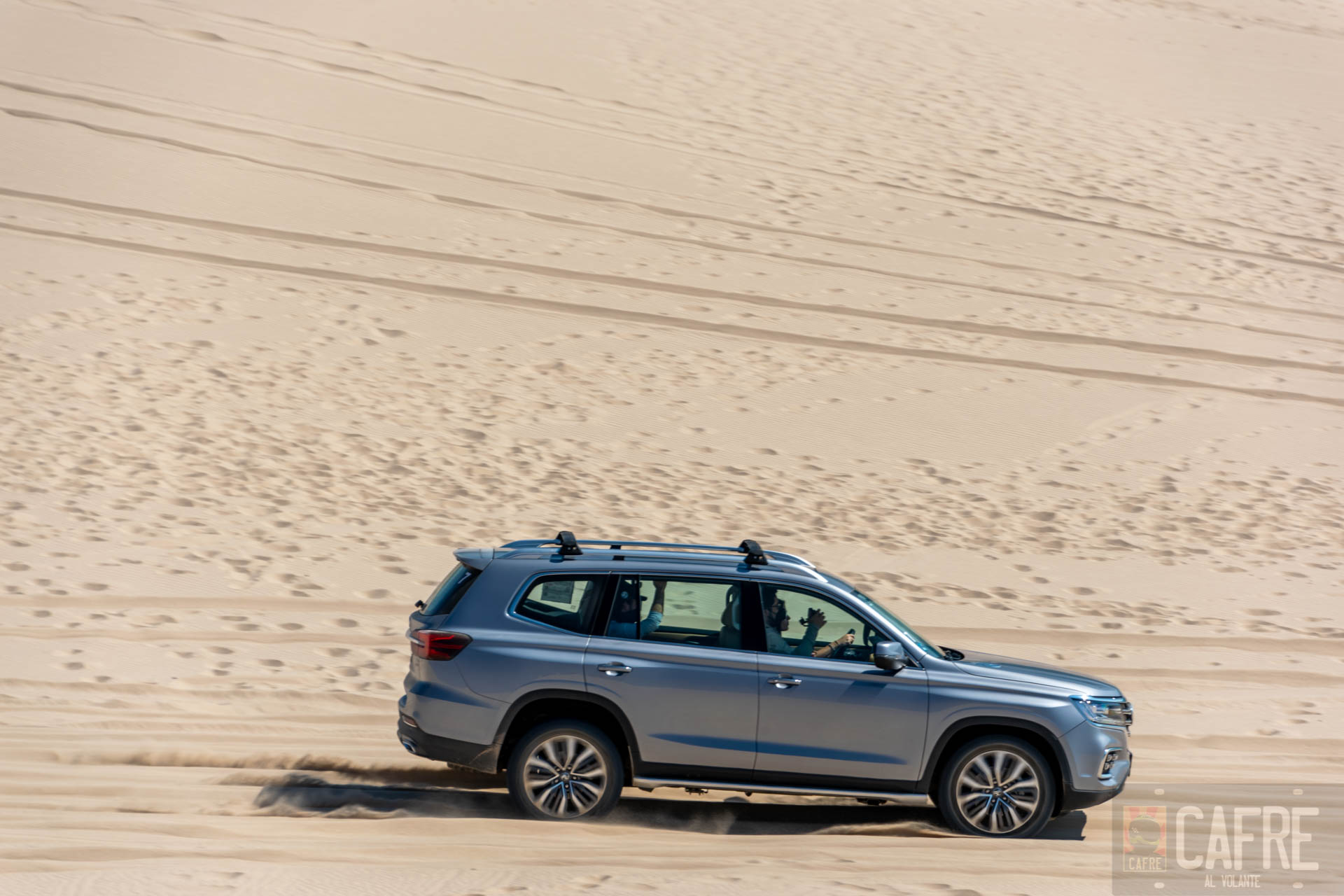 Al llegar a las dunas, nos esperaban el personal de MG para hacer un ajuste a la presión de las llantas, al desinflarlas nos permitiría tener mayor superficie de contacto en la arena. Ahora con el modo de manejo 4L (50:50) el reductor de velocidad se activa para darle mayor tracción al RX8 al girar más lento los neumáticos. Con este modo fue como iniciamos las pruebas todo terreno, entre pendientes muy inclinadas y poca adherencia por la arena suelta, el RX8 iba a demostrar sus capacidades 4×4.