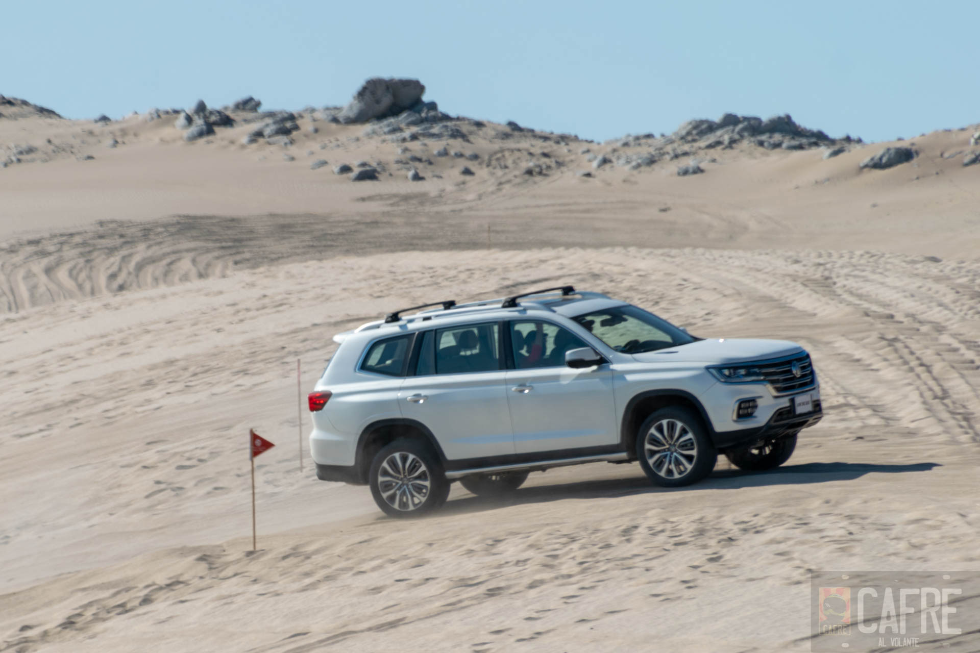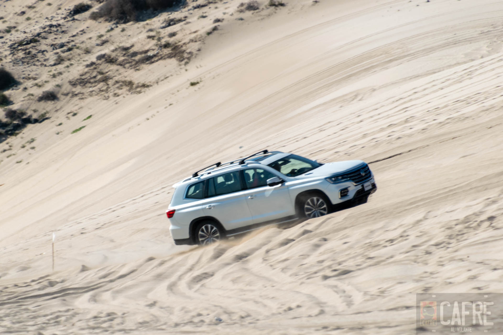 Una de las pruebas que destacaron fue el ascenso y descenso de las dunas el cual el MG RX8 lo hizo sin ninguna complicación, gracias al reductor de velocidad este también nos ayudaba a bajar estas pendientes de una manera controlada aún sin hacer uso del asistente de descenso de pendiente (esta asistencia va activando los frenos de manera autónoma mientras uno va descendiendo). La segunda parte de la prueba, consistió en un “circuito el cual tendríamos subidas, bajadas poniendo a trabajar los diferenciales con el sistema Torque On Demand para distribuir la potencia a las llantas.