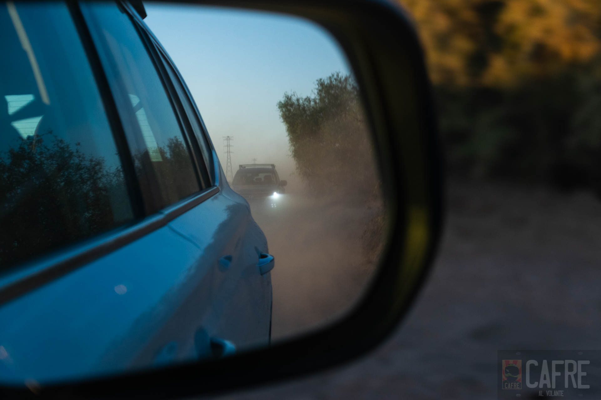 Nuestro destino para la prueba todoterreno fue en las Dunas de San Nicolás y para llegar a ese punto tuvimos que ir por un tramo de pura terracería por lo que seleccionamos el modo Off Road (50:50), este trayecto fue ideal para probar la suspensión independiente de doble horquilla al frente y multilink en la parte de atrás. Como ya no nos acompañaba los policías en este tramo, aumentamos un poco más la velocidad sintiéndonos como en una etapa del Rally Dakar. Hay que resaltar que, a pesar de esta exigencia de velocidad en un terreno irregular, el RX8 nunca demostró fragilidad en su ensamble, ya que no se escuchaba algún ruido irregular de la suspensión o carrocería.