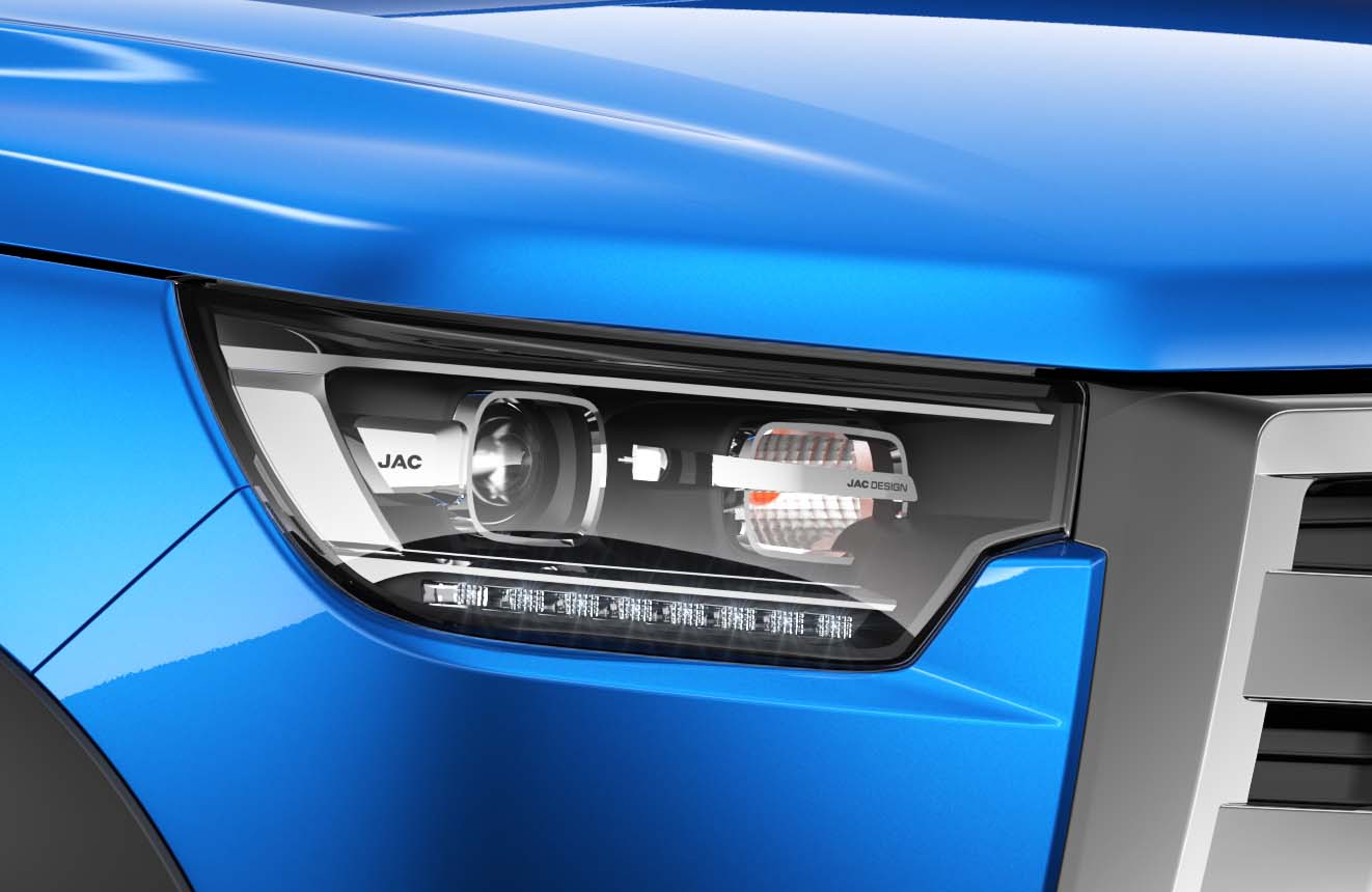 El imponente diseño exterior de FRISON T8 se mantiene al igual que el modelo a gasolina, la distintiva parrilla con líneas horizontales que abarcan prácticamente todo el frente del vehículo, en combinación con el clásico logo de JAC acentúan la fuerte personalidad de la pickup. Los faros de halógeno, las luces de manejo diurno, las luces de niebla frontales y los rines de 18” conjugan a la perfección reforzando su apariencia robusta.