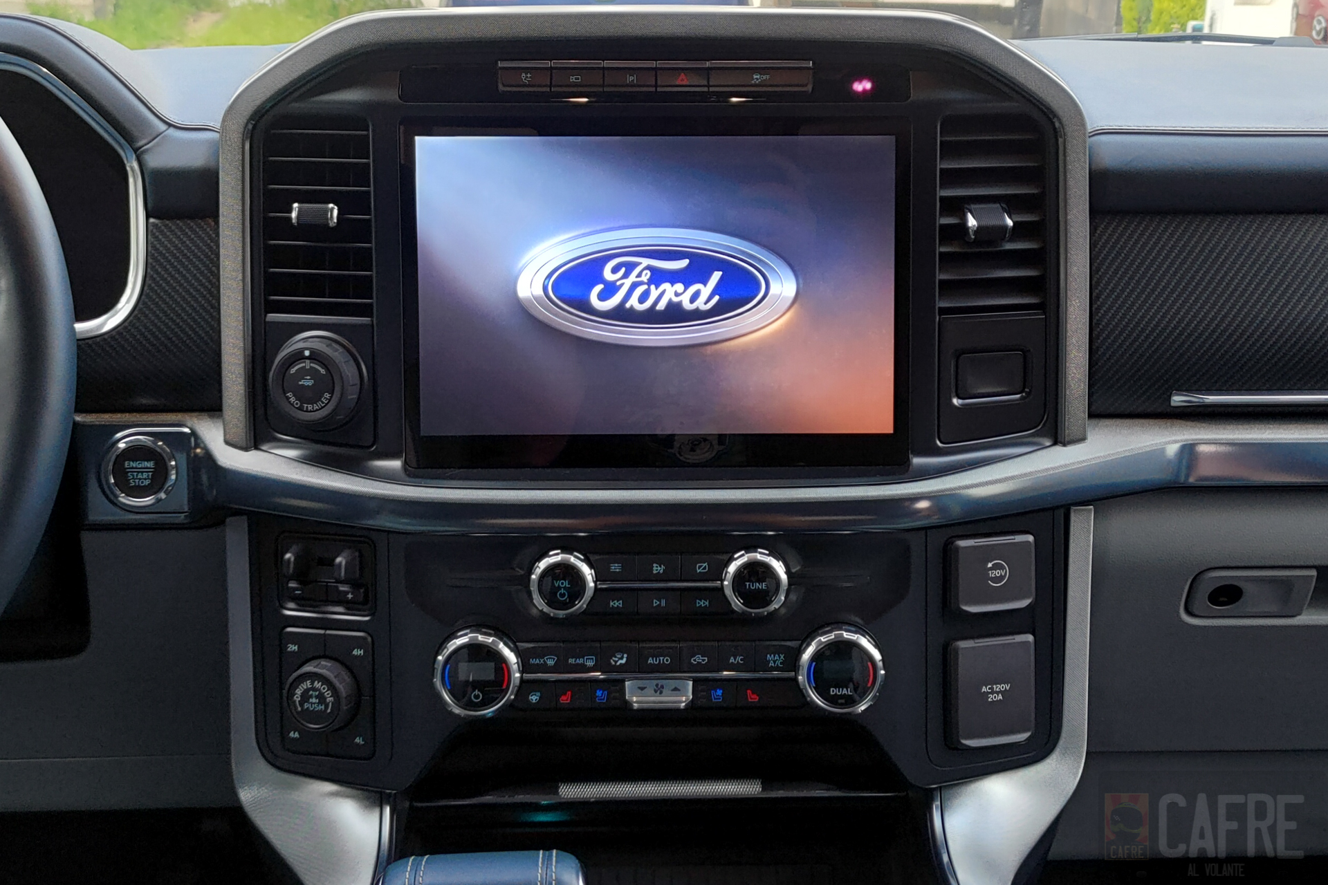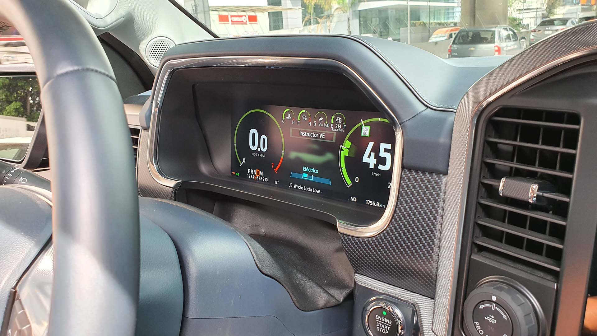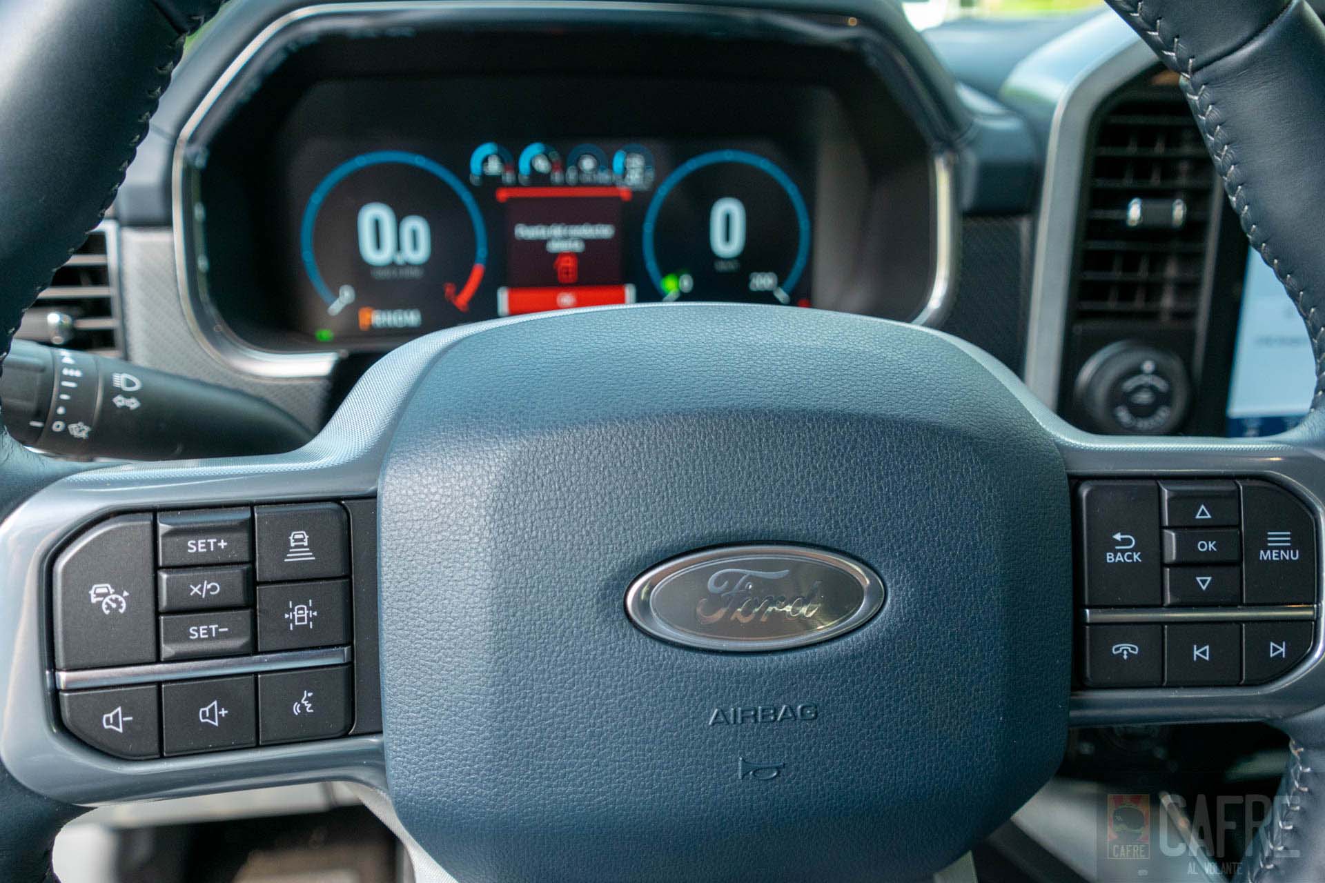 Al estar preparados para iniciar nuestro viaje oprimimos el botón de encendido y no escuchamos nada. Como buen híbrido, la motorización eléctrica será la que se encargue de mover a la F-150 al momento de pisar el acelerador, si requiere más fuerza entrará el motor de gasolina.