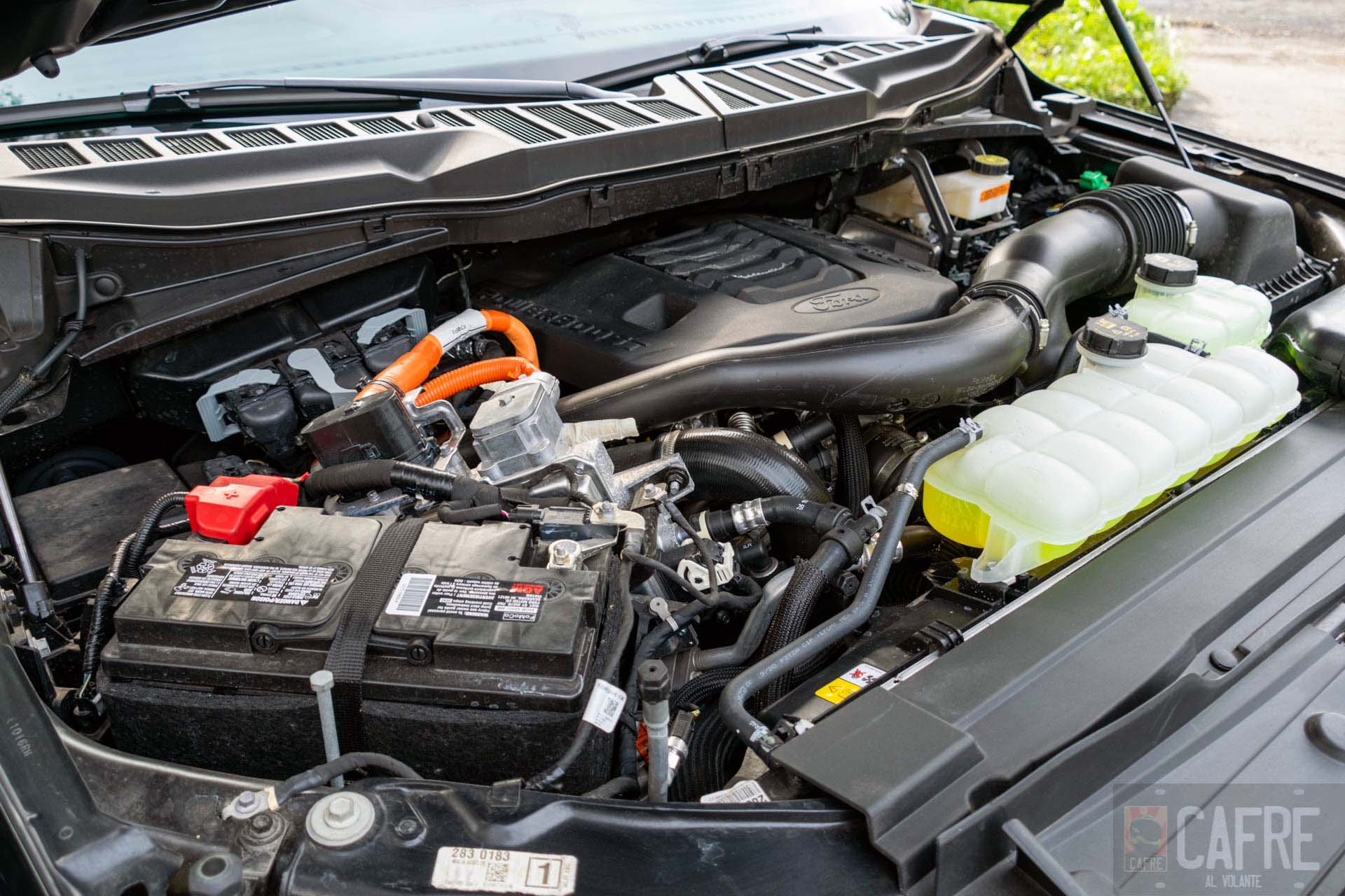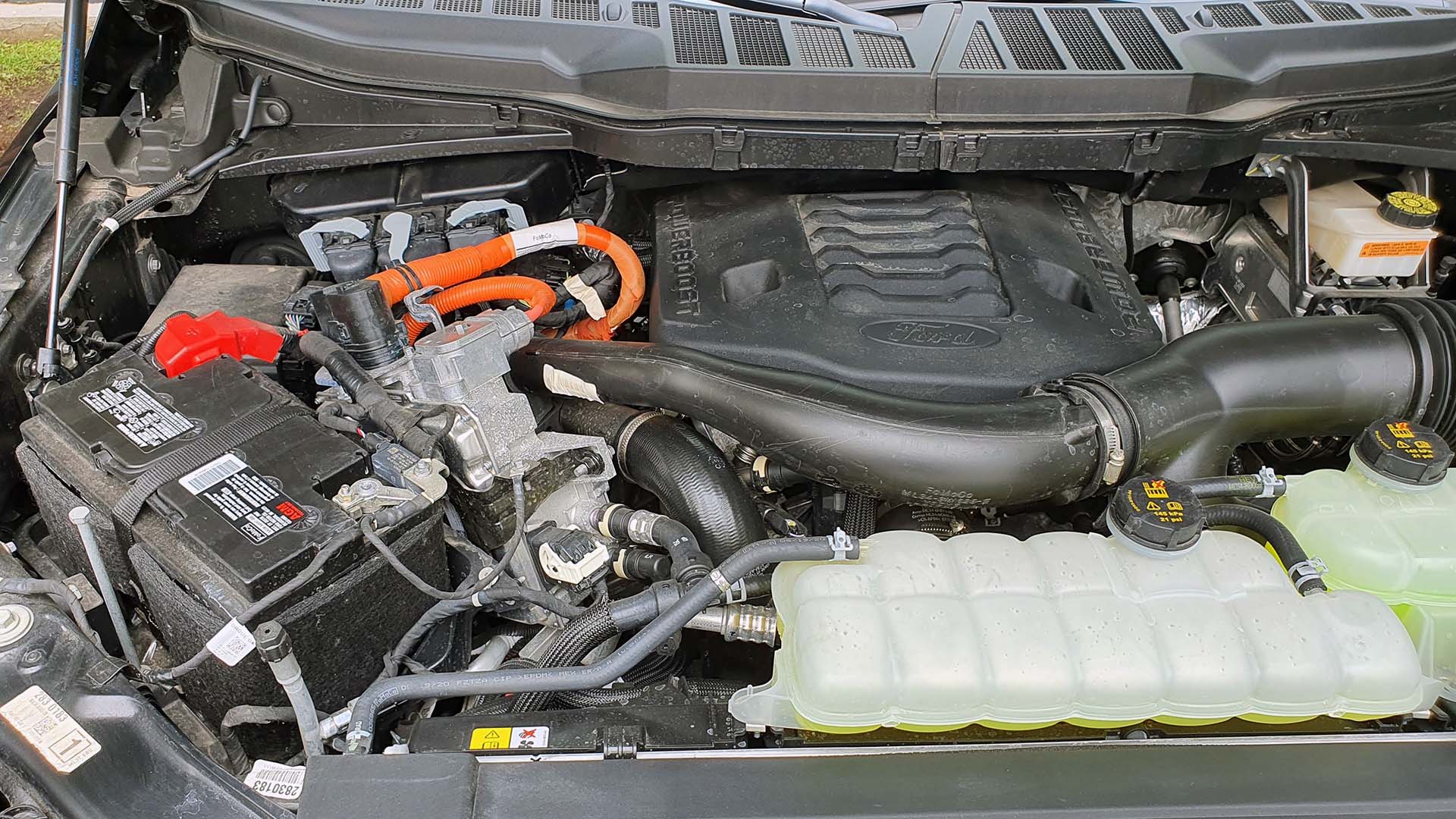 Algunos detalles que notamos en la F150 Powerboost en verdad fue llegando a los extremos (y hasta la exageración), es la incorporación del sistema híbrido, pareciera que lo insertaron en donde encontraron un espacio dando el aspecto de que fue muy improvisado, esto es más que nada una cuestión de estética y presentación comparándolo con otros híbridos que si lo tienen mejor diseñado.