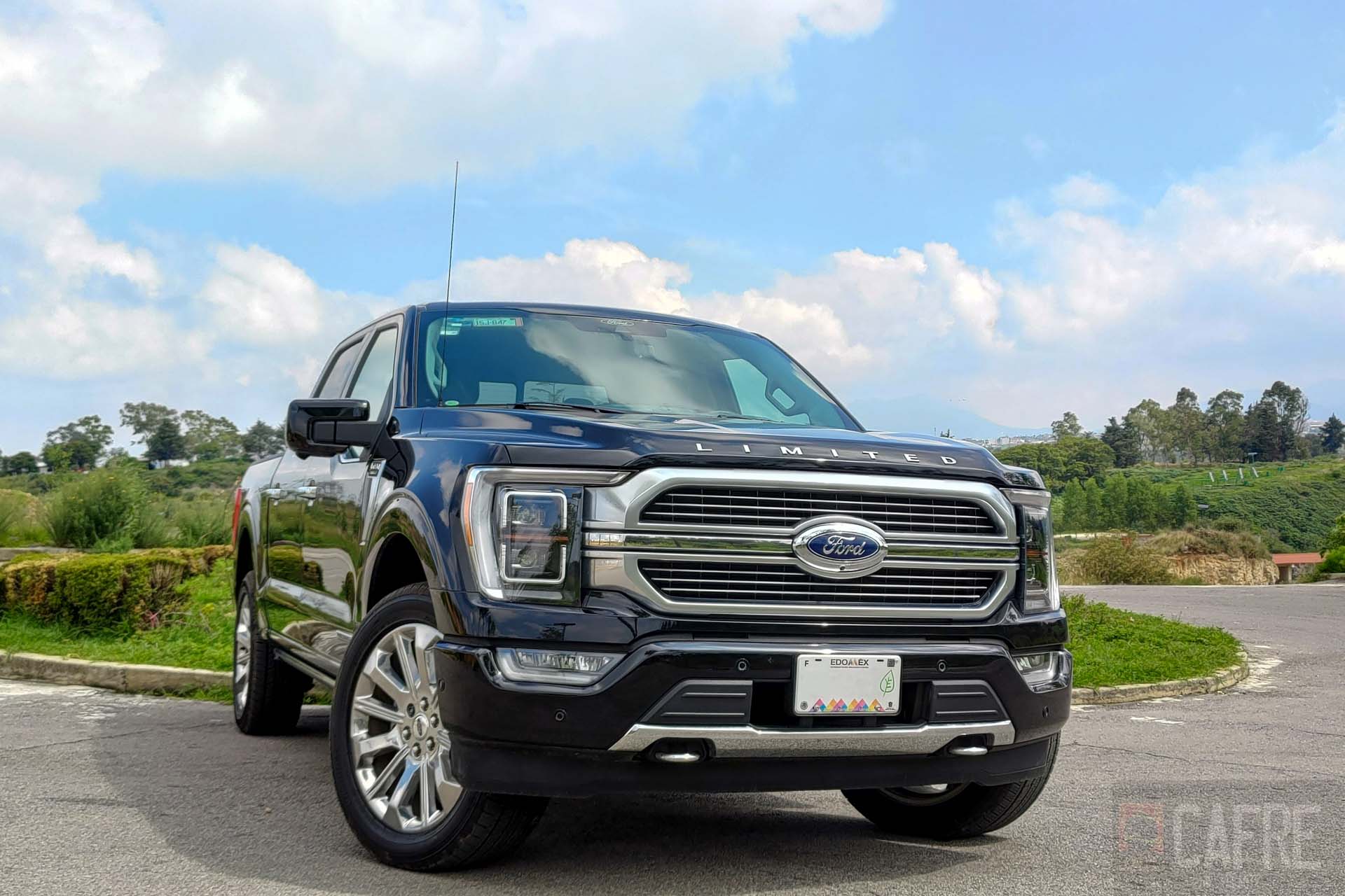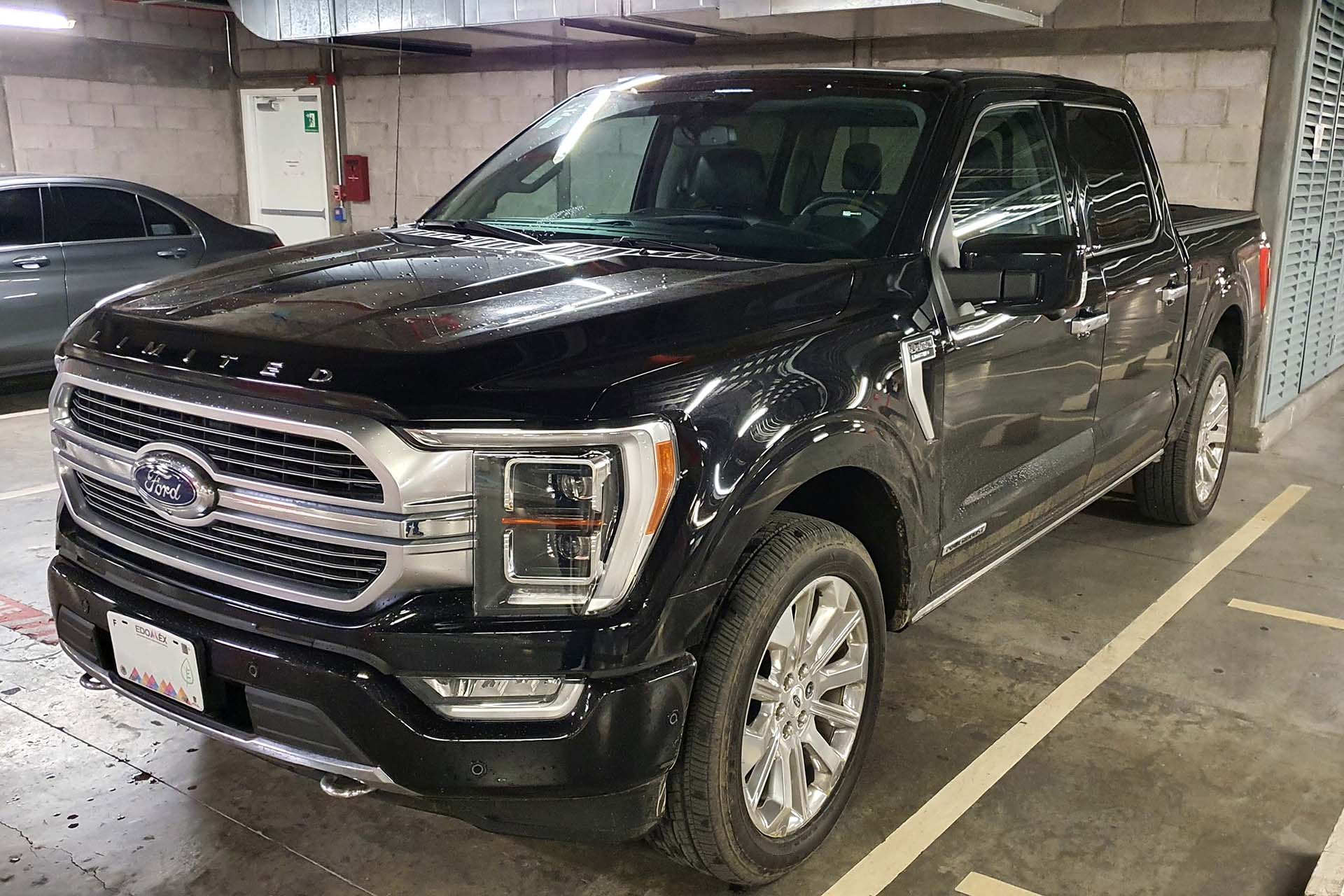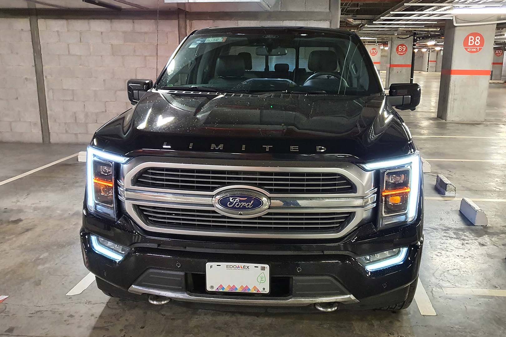 En el exterior no tendremos alguna característica que nos de referencia que se trata de un modelo híbrido, veremos el nuevo frente el cual resalta la enorme parrilla con el emblema de Ford al centro de ella. En el filo del cofre tendremos la palabra “LIMITED” dándonos a entender que es una versión bien equipada. Los faros delanteros rectangulares presumen de iluminación LED. Con este diseño, para imponerse (aún) más veremos que las luces diurnas se extenderán hasta los faros de niebla, dando la impresión de lo enorme que son estas pickups. Como buen vehículo de carga o de aventura, veremos los ganchos de arrastre elegantemente colocados al inferior de la fascia.