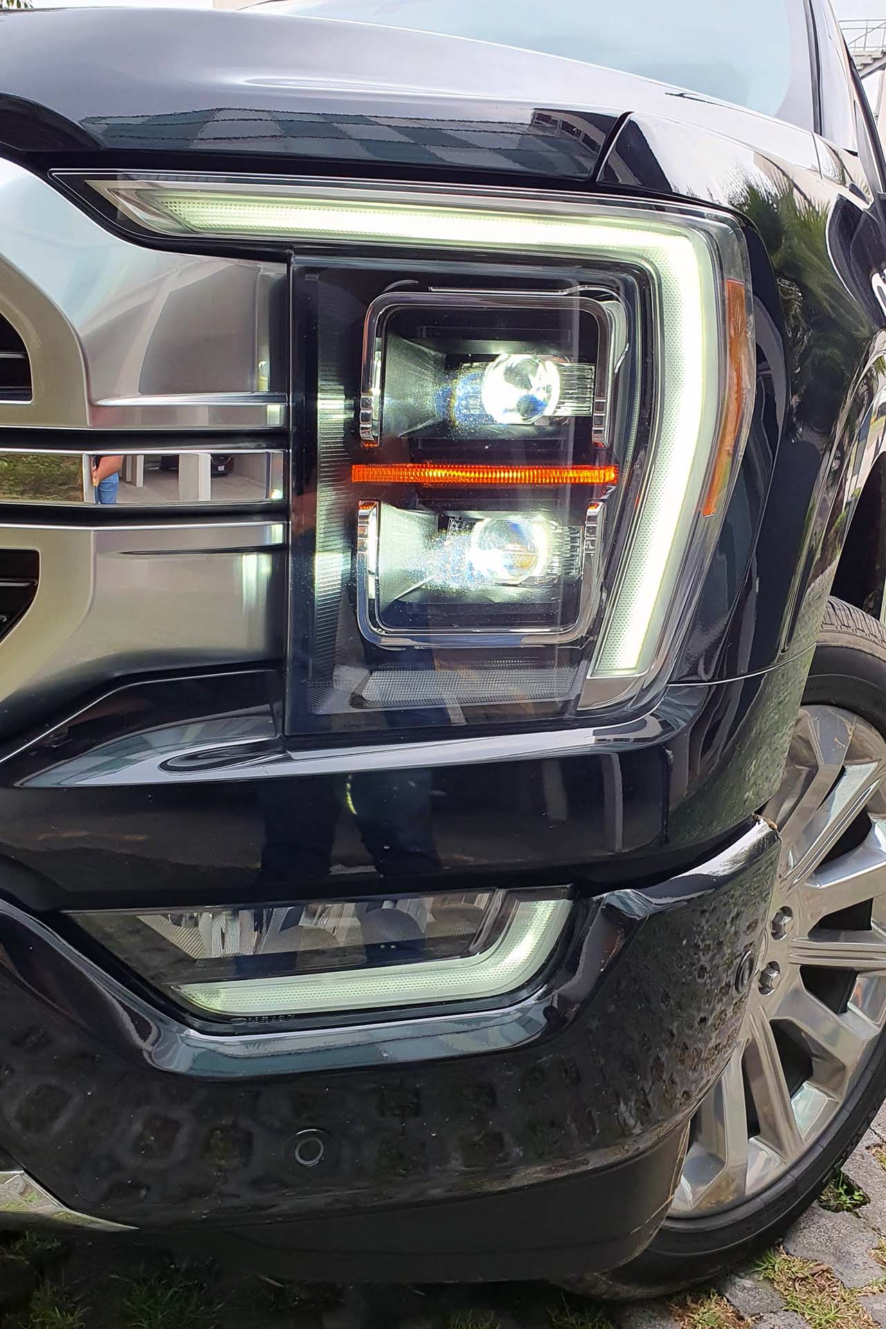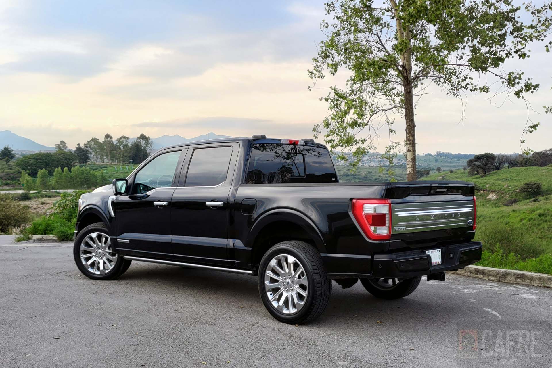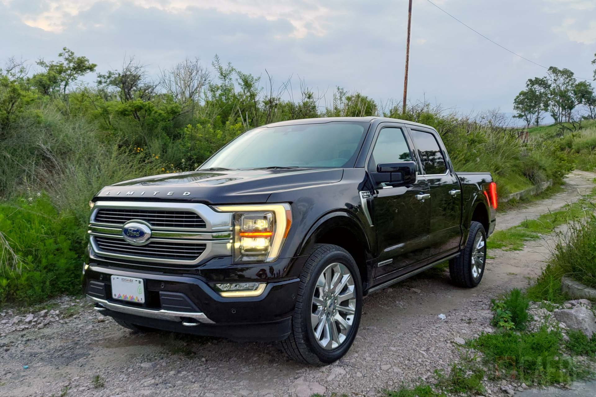 En el exterior no tendremos alguna característica que nos de referencia que se trata de un modelo híbrido, veremos el nuevo frente el cual resalta la enorme parrilla con el emblema de Ford al centro de ella. En el filo del cofre tendremos la palabra “LIMITED” dándonos a entender que es una versión bien equipada. Los faros delanteros rectangulares presumen de iluminación LED. Con este diseño, para imponerse (aún) más veremos que las luces diurnas se extenderán hasta los faros de niebla, dando la impresión de lo enorme que son estas pickups. Como buen vehículo de carga o de aventura, veremos los ganchos de arrastre elegantemente colocados al inferior de la fascia.