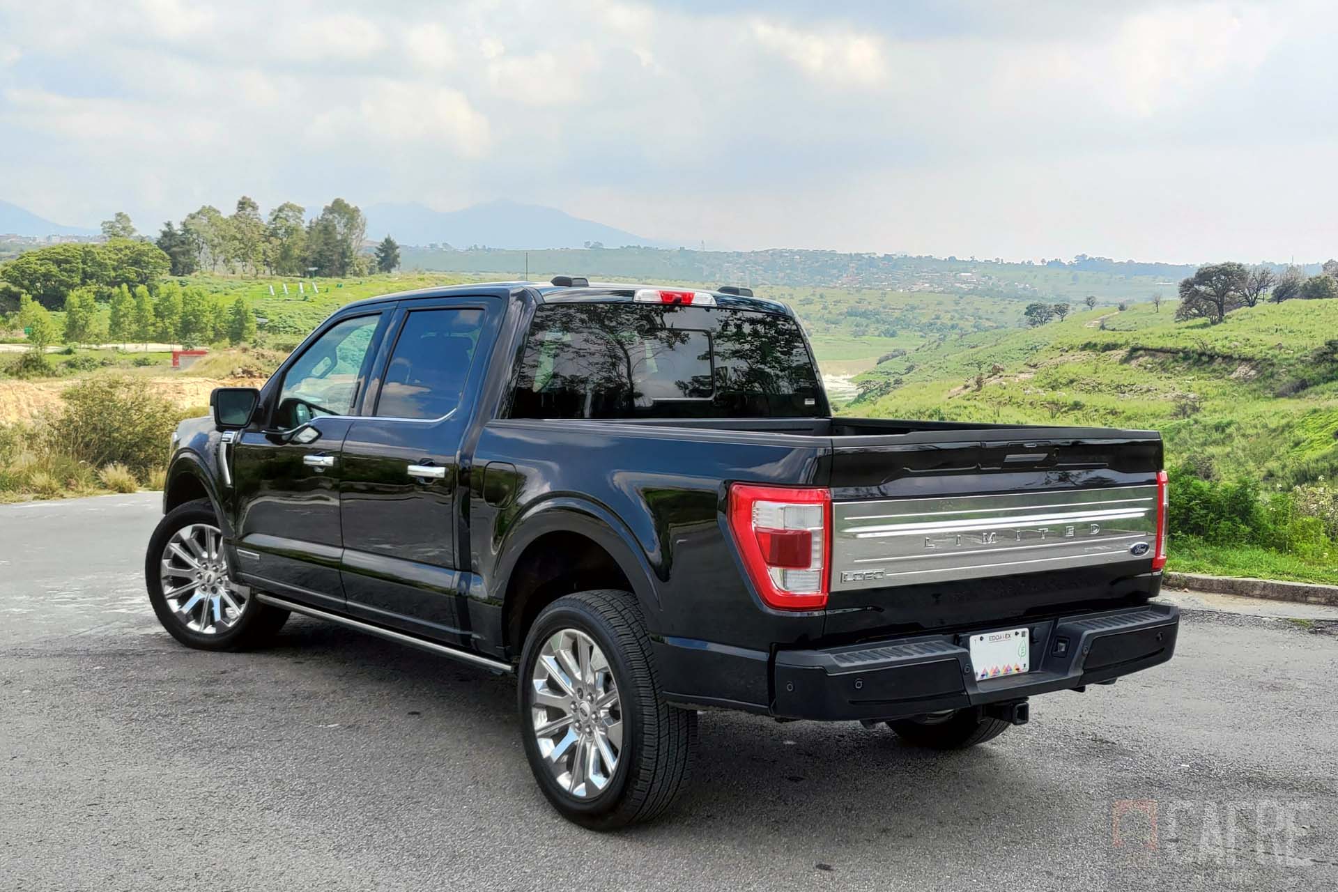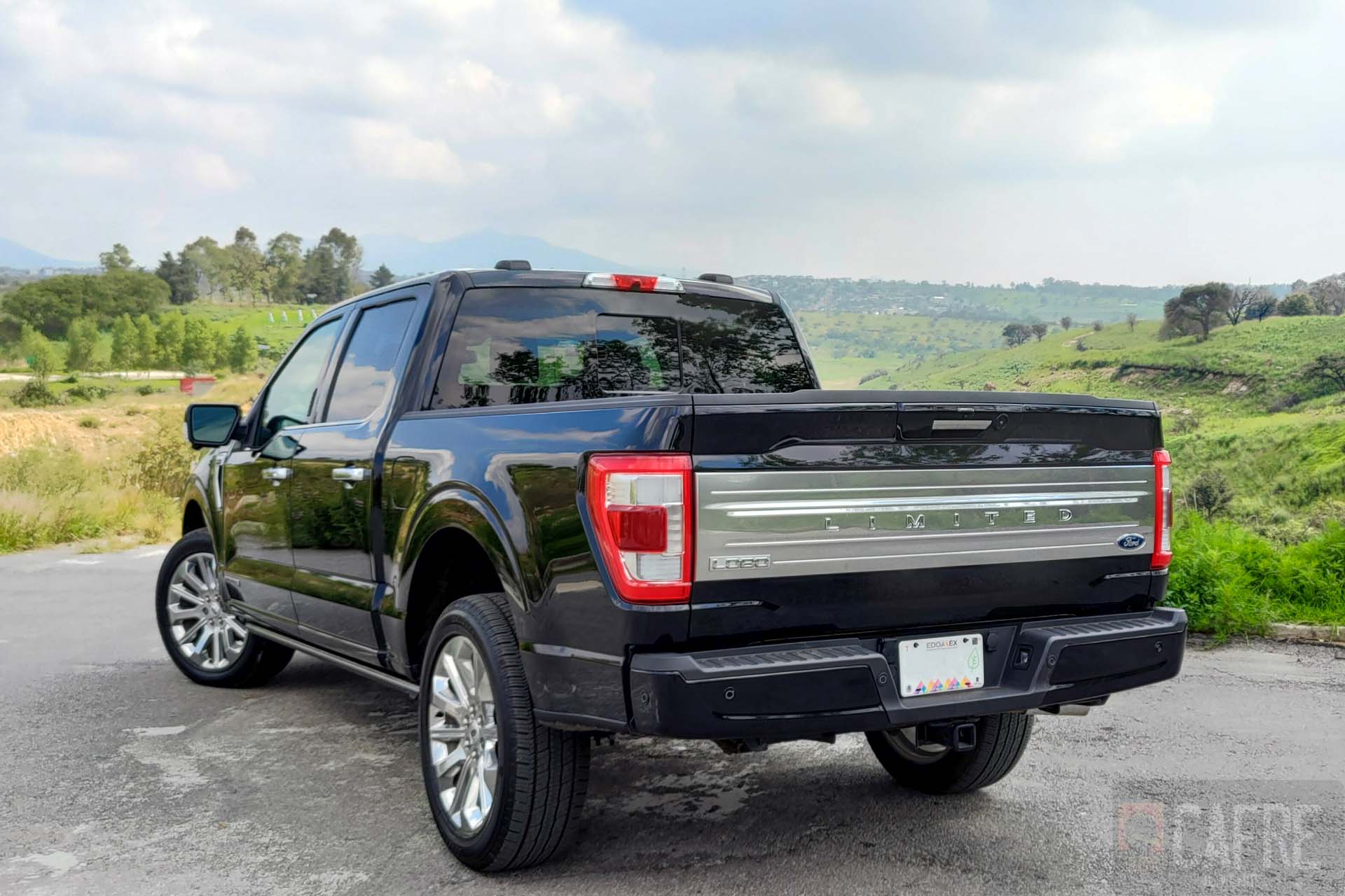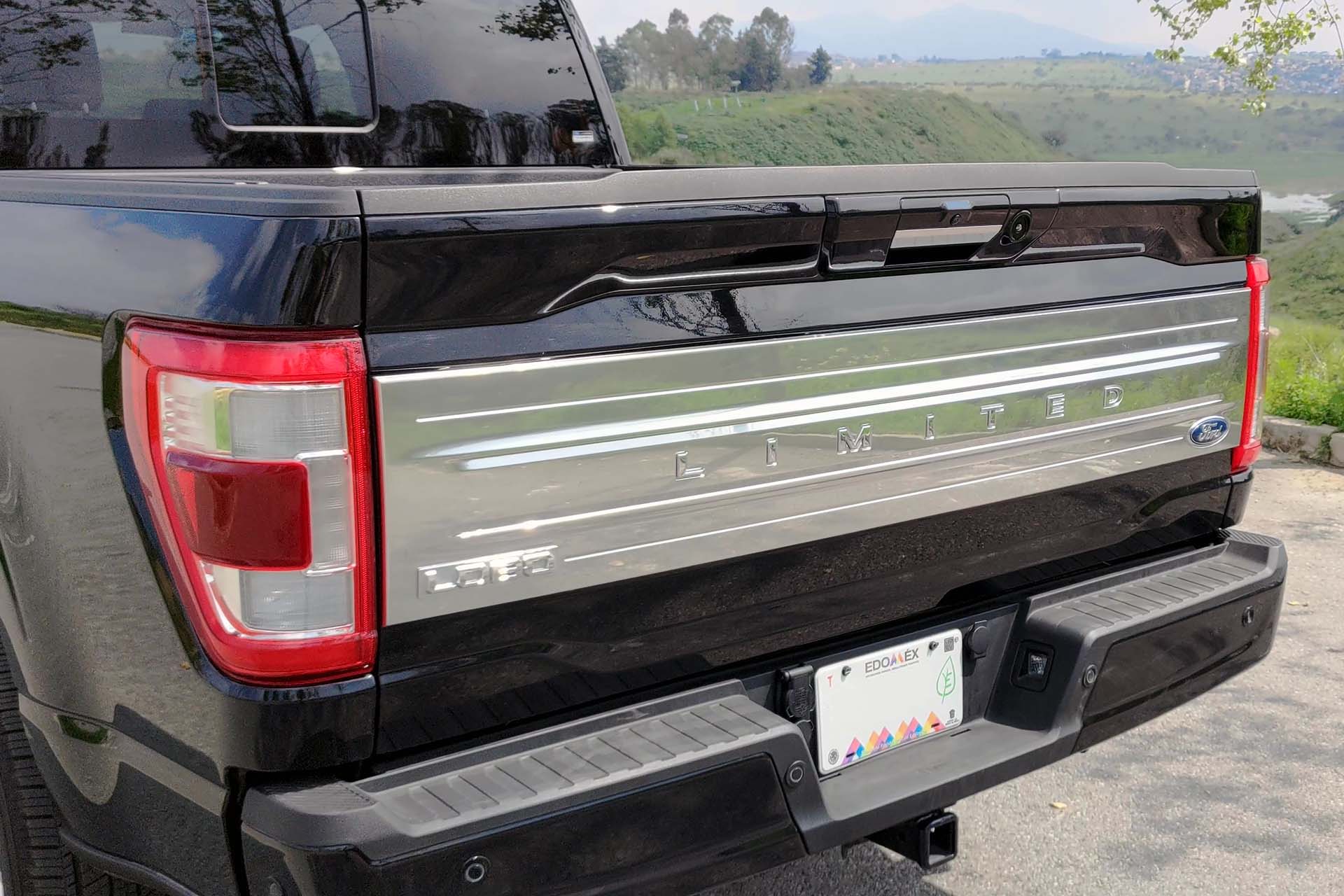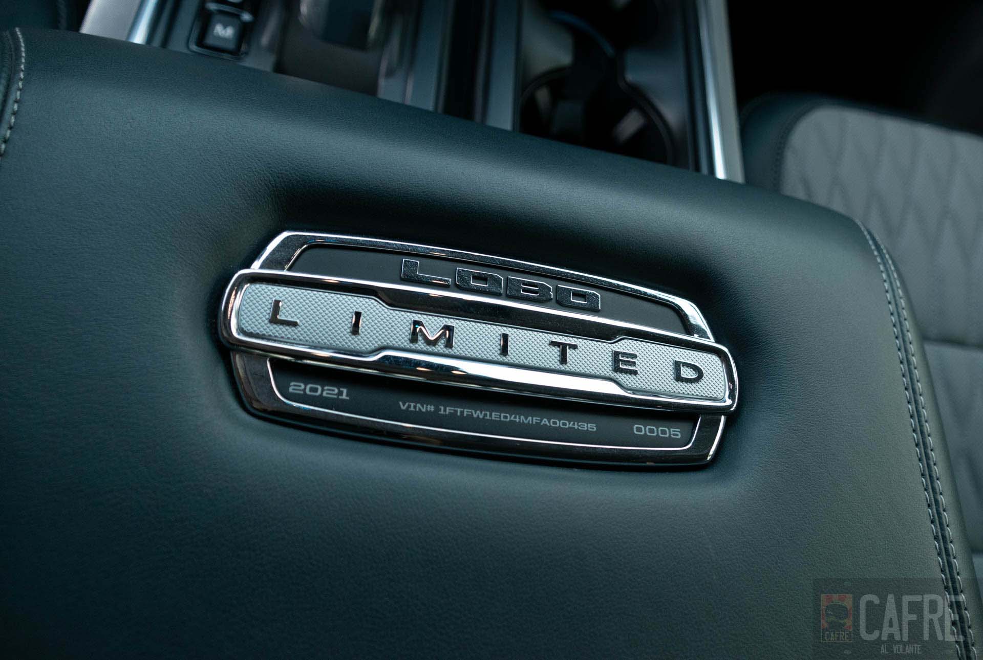 La parte trasera se resume en la batea, a diferencia de los costados, aquí sí tendremos una moldura cromada con la palabra “LIMITED” grabada en ella, además de los pequeños emblemas de Lobo y Ford a los costados. Las calaveras de LED tienen un delineado para darle mejor visión al momento de tener las luces encendidas. La puerta es acceso electrónico, sólo con oprimir un botón esta se abrirá y cerrará de manera automática (también puedes hacerlo a distancia con la llave).