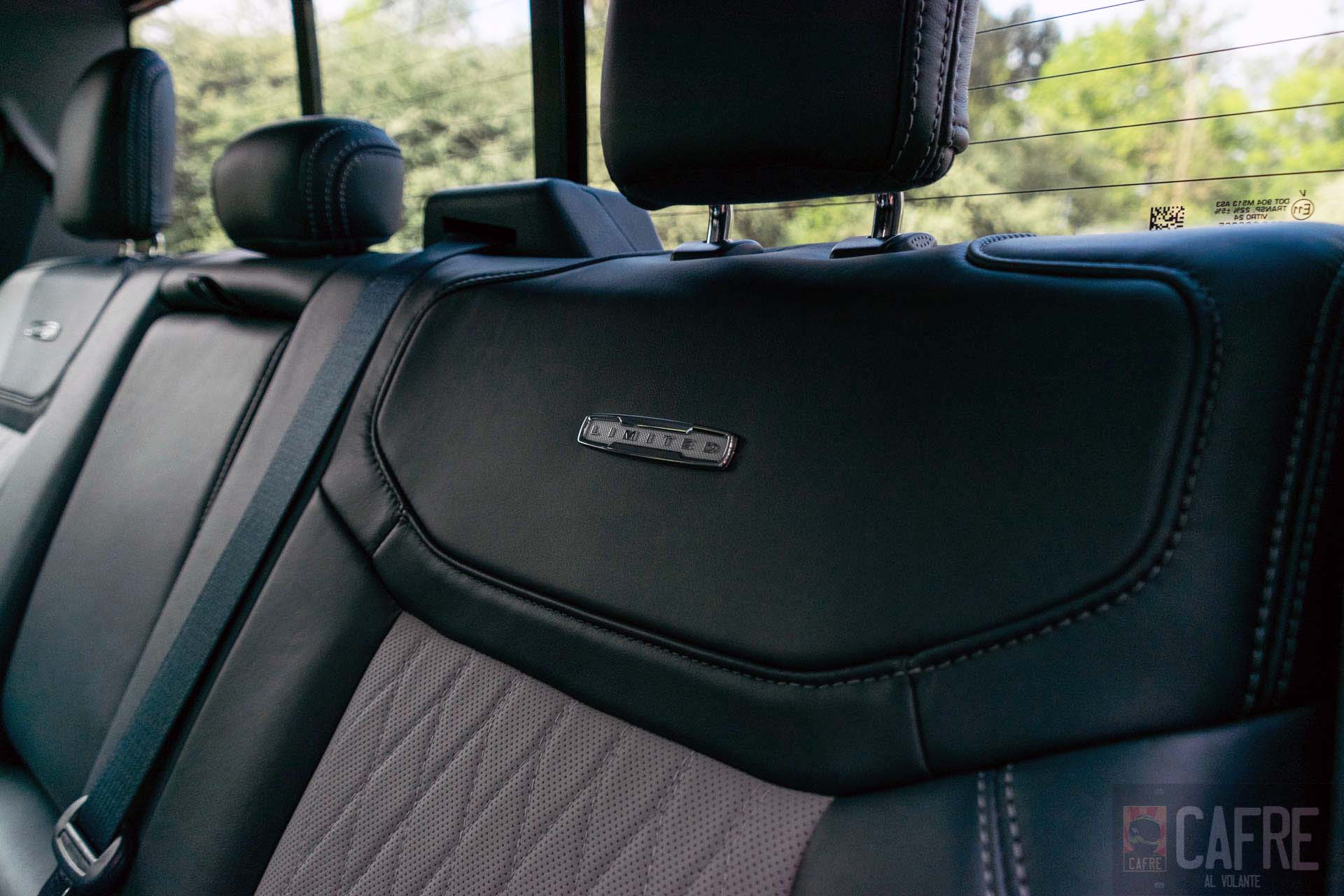 Al centro de los asientos delanteros está la enorme consola central, resaltará el descansabrazo que además de ser bastante cómodo, está tapizado en piel y contará al con el emblema de LIMITED con el número de serie y el de edición grabado en él. La palanca de velocidades es plegable para generar una superficie plana a la consola, esto debido a que el descansabrazo puede tener la opción de convertirse en una mesa de trabajo (aunque en la que manejamos no lo traía esta función). Otra de las cualidades de esta consola central es el espacio de almacenamiento que está debajo del descansabrazo que es enorme, tanto así que lo imaginaba como una hielera, pero debido a que también tiene conexiones eléctricas no era posible vaciarle los hielos. Por último, hasta el frente de la consola contaremos con el cargador inalámbrico y dos puertos USB para conectar el celular al sistema de infoentretenimiento.