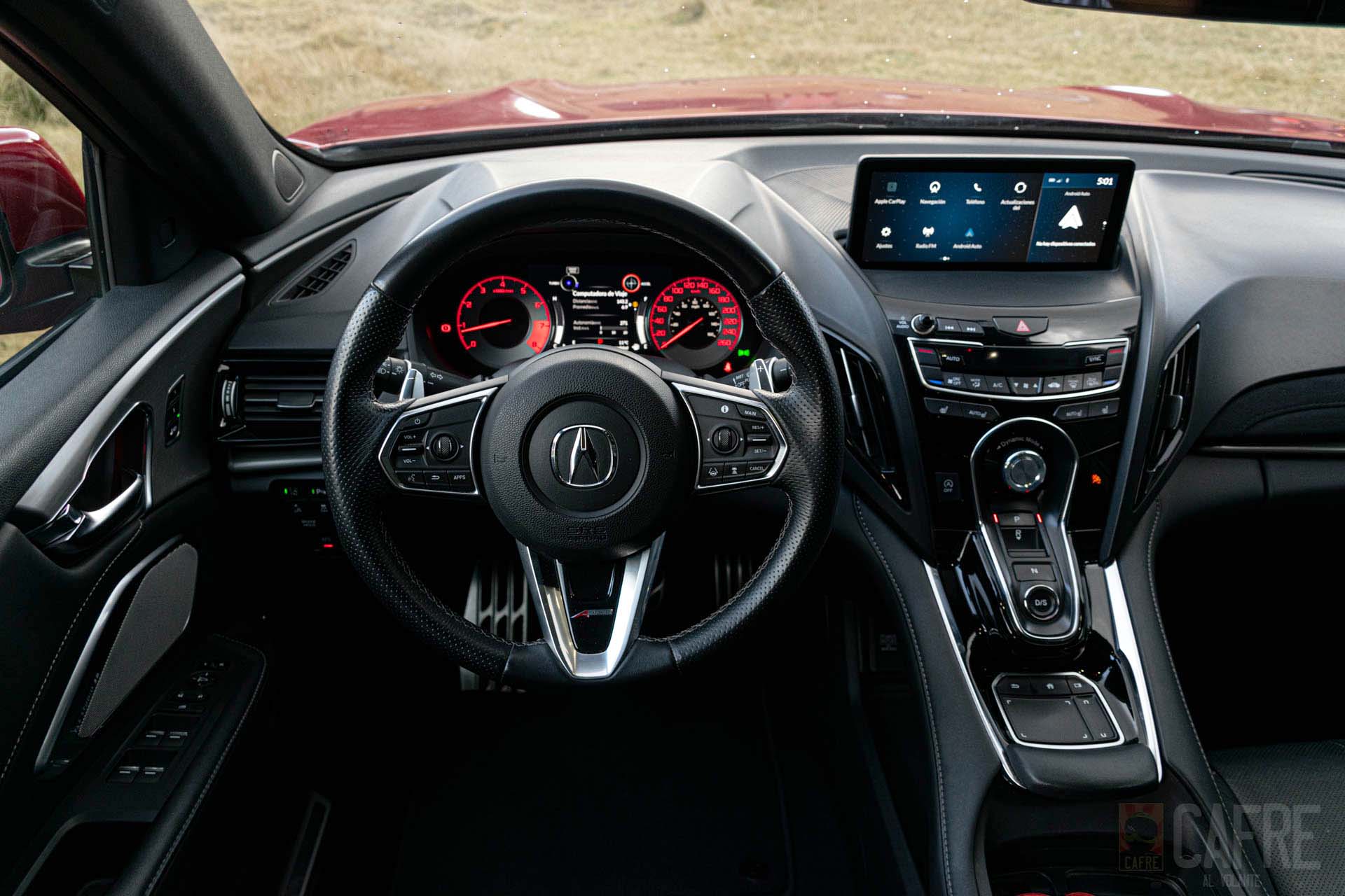 El interior es uno de los más deportivos y cómodos que hemos sentido, con asientos tapizados en piel con incrustaciones de alcántara (para la versión A-Spec) hace una increíble función de tenerte a gusto mientras conduces. El volante contará con varias funciones, principalmente enfocado a la activación de las asistencias Acura Watch que no interfiere mucho en tu conducción, pero estarán ahí cuando sea necesario (algo que se agradece bastante). Esta RDX tiene el nuevo sistema de infoentretenimiento con la pantalla de 10 pulgadas que funciona con el Touch Pad para no distraernos al operar este sistema de infoentretenimiento.