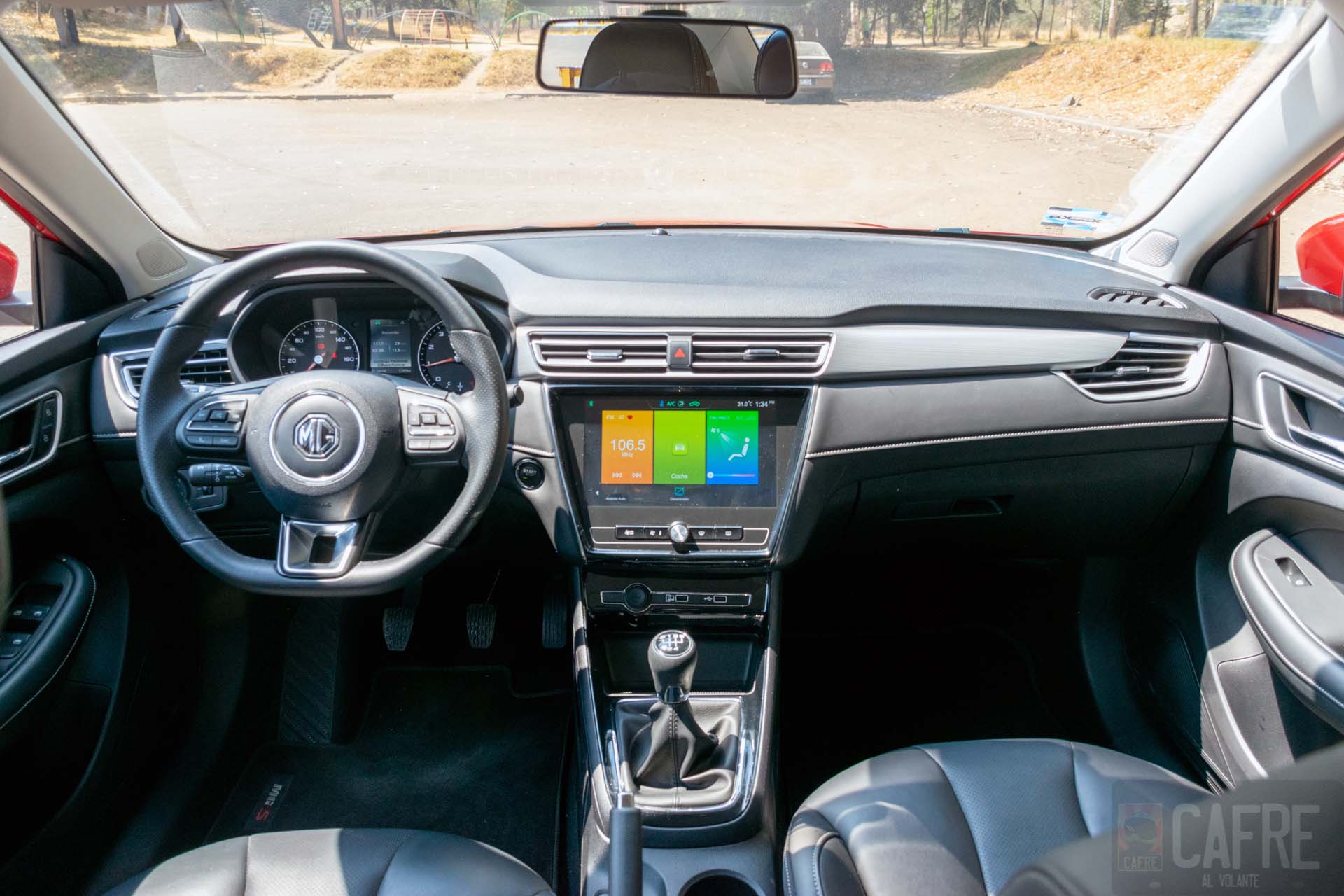 En el interior disfrutaremos de un espacio bastante aceptable, con el cual los pasajeros podrán viajar cómodamente. Los materiales y acabados también serán de tu agrado, tendremos el volante multifunción para la computadora de viaje y el sistema de infoentretenimiento. La pantalla central es de 10 pulgadas en la cual además de poder reproducir el Android Auto o Apple Car Play de manera completa, también podremos configurar ciertas funciones en ella como el aire acondicionado o mejor aún, el modo ECO que integra el MG 5.